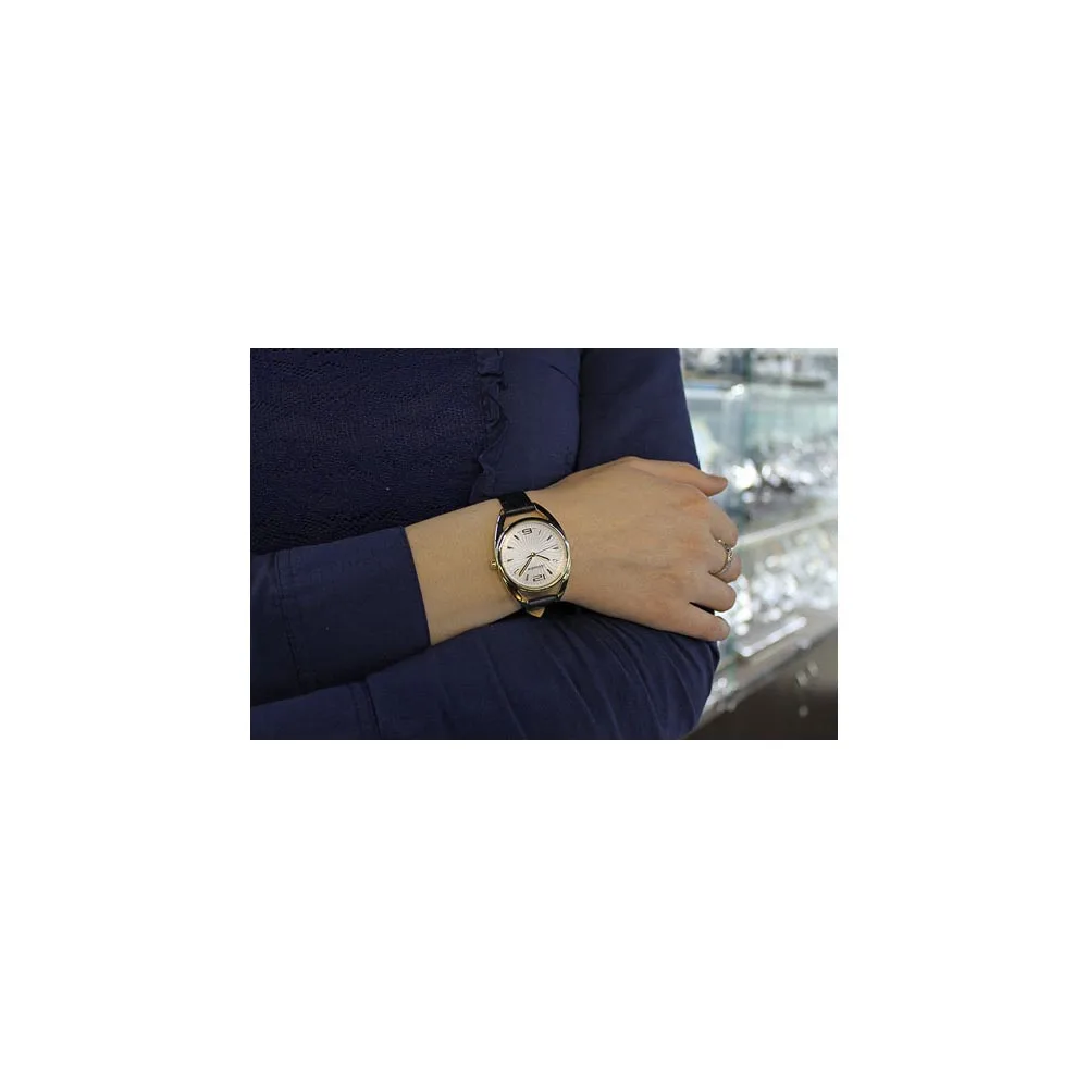 Ladies. Quartz watch. The shell is made of steel. Leather strap with buckle.