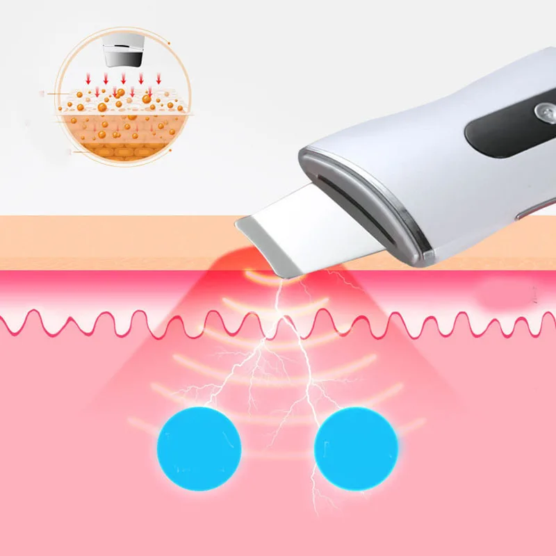 Супер тонкий и компактный внешний вид, эргономичная обтекаемая ручка, удобный интерфейс и сенсорный экран, такой дизайн сделан для вас, чтобы использовать его более легко и удобно. Доступны 3 режима работы: очищение, увлажнение и лифтинг. Принимает ультразвуковую волну и нанотехнологию, сочетая с уникальным зондом типа лопаты и высокочастотной вибрацией, она может глубоко проникать в кожу лица. Многофункциональный. Этот косметический инструмент может проникать в глубину кожи, глубоко очищать кожу от грязи и вводить питательный раствор, который может улучшить микроциркуляцию, драги потовых желез, сужает поры и помогает решить многие проблемы с кожей. Удобная перезаряжаемая конструкция и долговечность. Его можно непрерывно использовать в течение 3-4 дней после полной зарядки.