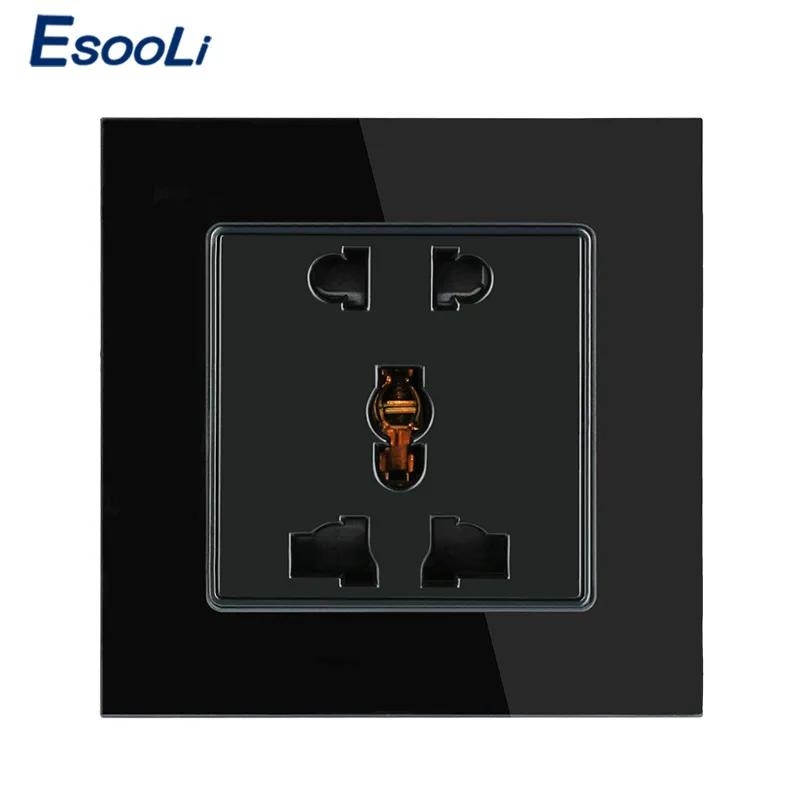 Esooli Универсальный 5 отверстий на выходе роскошный 13A настенный разъем питания белый кристалл стеклянная панель AC 110 ~ 250 В настенный выключатель