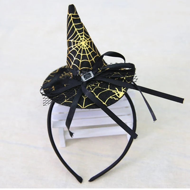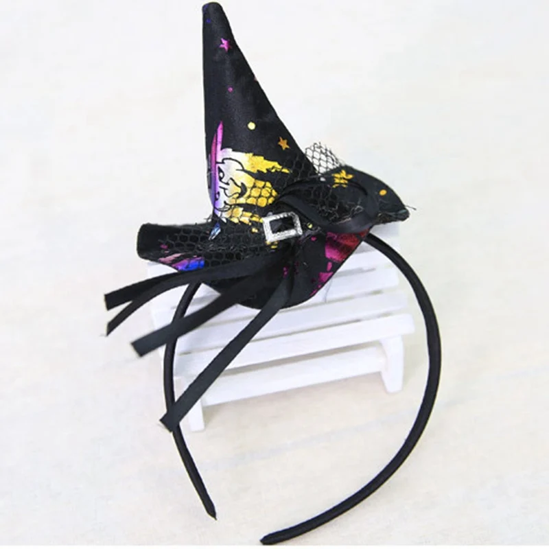 Конус для Хэллоуина, ободок для волос, шляпа ведьмы, аксессуары для волос, аксессуары для выпускного на волосы, обруч, вечерние реквизиты для детей, Кружевная повязка на голову с драгоценными камнями