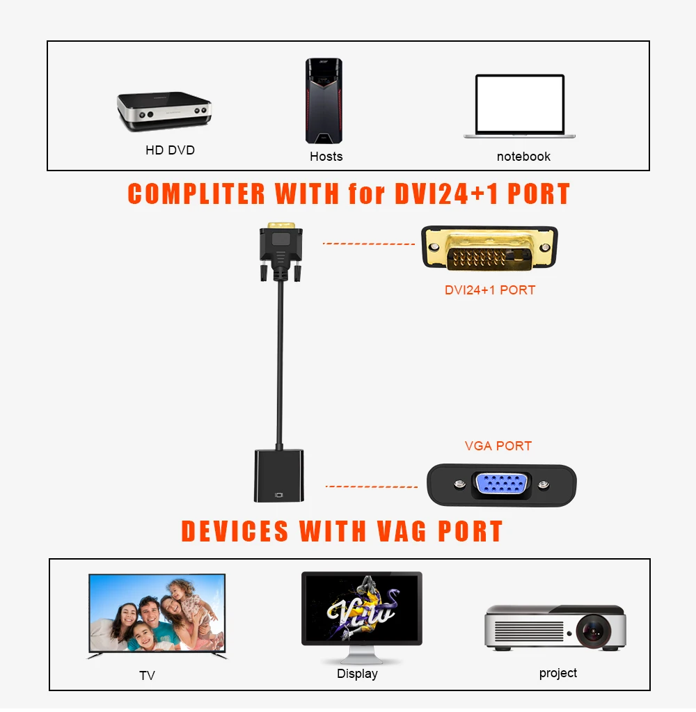 Оригинальный адаптер TISHRIC DVI-D в Vga 24 + 1 штыревой разъем к гнезду адаптер Dvi Vga кабель конвертер для HDTV PC дисплей 1080P