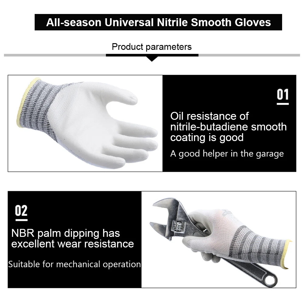 *Nitrile smooth coating, good oil resistance, suitable for automotive repair, construction site, mechanical operation, etc.