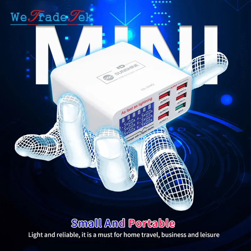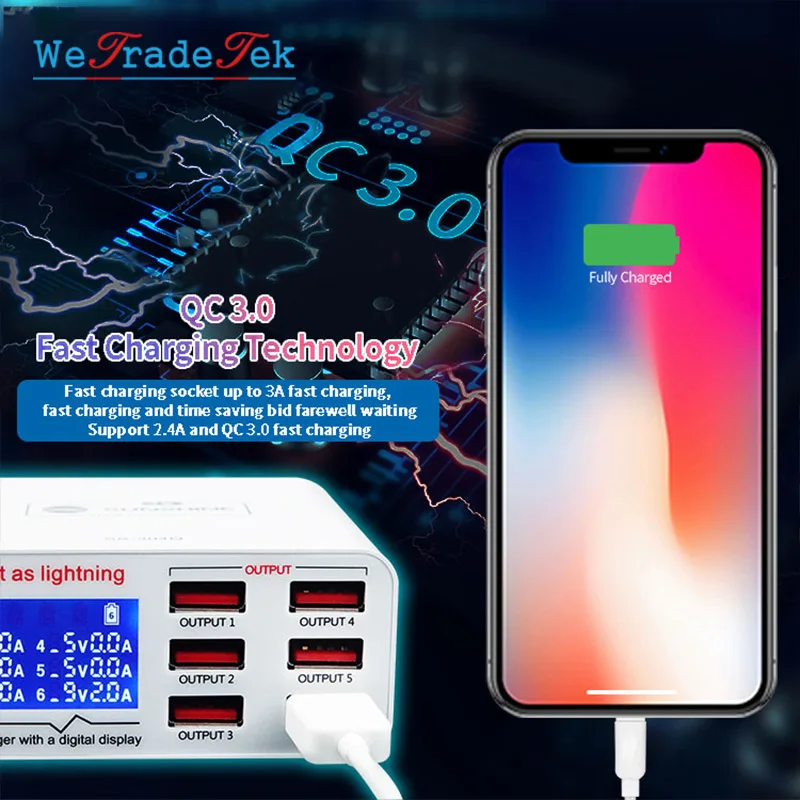 SS-304Q 6 портов USB быстрая зарядка 3,0 цифровой дисплей Быстрая зарядка устройство для iPhone Huawei Samsung Xiaomi iPad планшет быстрая зарядка