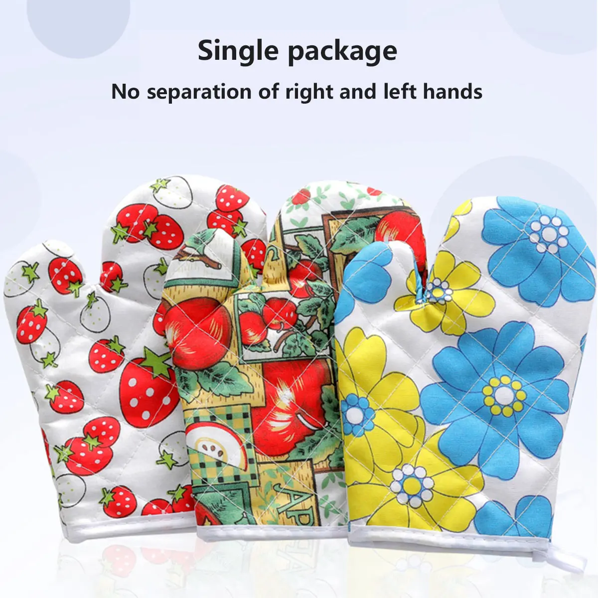 Особенности: удобная и дышащая ткань из полиэстера и хлопка. Включает в себя термоизоляционный коврик и тепловую прокладку. Швы аккуратные и гладкие, и качество изготовления хорошее. Внутренняя изоляция хлопка, хороший эффект изоляции. Случайные цвета, свежие яркие цвета, модная печать, толстые и мягкие, теплоизоляционные, антиобжимные, износостойкие и прочные, является незаменимым помощником для микроволновой печи и выпечки.