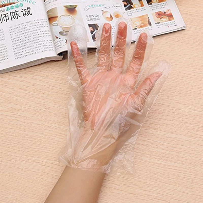 500 шт 100 шт пластиковые перчатки для приготовления пищи одноразовые Кейтеринг Сделай Сам Чистка краска для волос PE перчатки для ресторана отеля барбекю еда