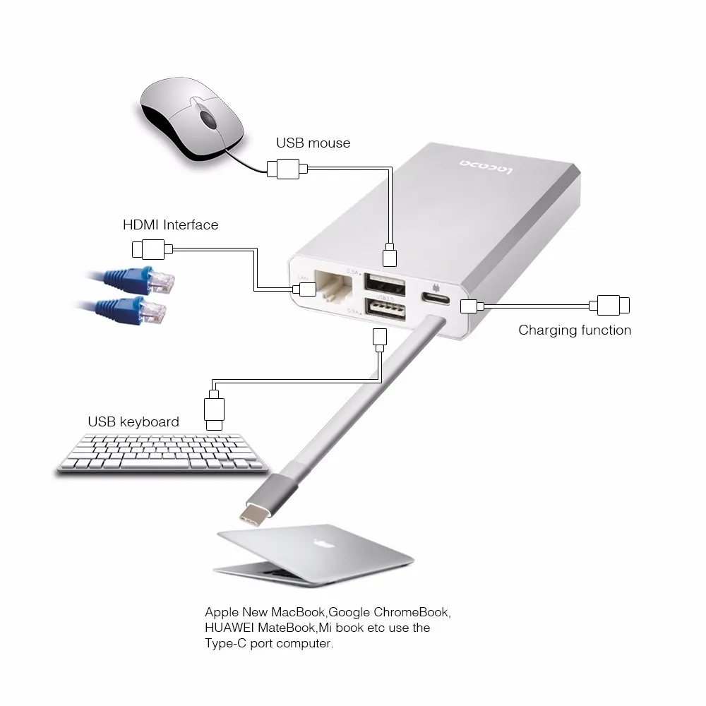 Используйте для всех компьютеров, которые используют порт USB-C, а не мобильный телефон;VGA и HDMI поддерживает только одну работу prot одновременноУправление инструкция