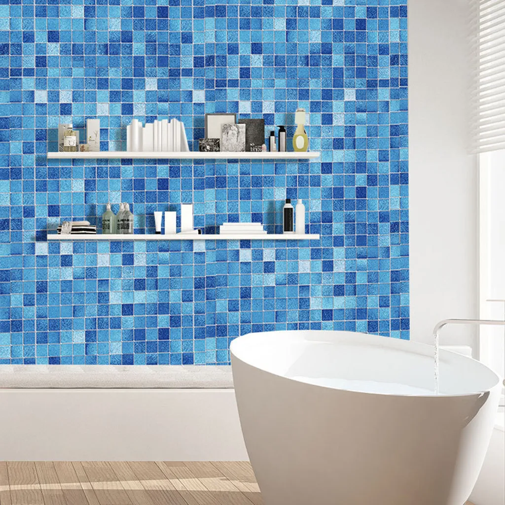 Кухня, не пропускающая масло, синий Квадратной формы Самоклеющиеся наклейки для ванной комнаты