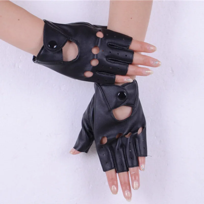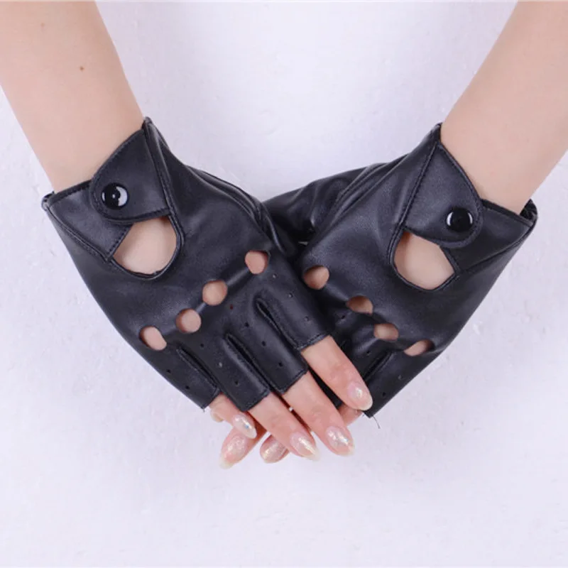1 пара, женские перчатки для вождения, искусственная кожа, без пальцев, черные варежки для рук