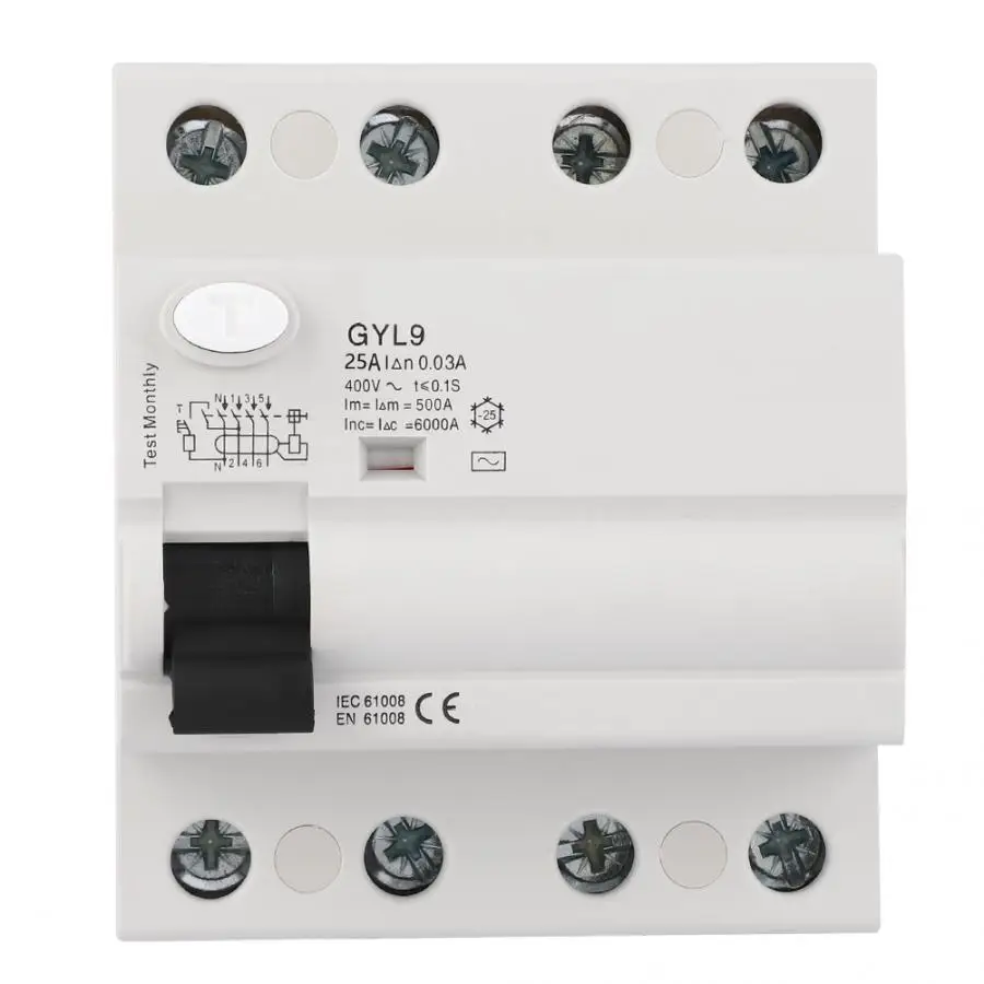 GYL9 остаточный ток выключателя подходит к цепи переменного тока в переменного тока, 50/60 Гц, номинальное напряжение 230V для 2 полюса и 400V для 4 полюса, и номинальный ток до 100A. Когда люди сталкиваются с электрическим током или ток утечки электрической сети превышает фиксированное значение, этот продукт может отрезать ток неисправности в короткий период, чтобы защитить человека и оборудования. Он также может использоваться в нечасто, начиная от цепи и моторов. Автоматический выключатель подходит для промышленности, торговли, высотного строительства, домашнего хозяйства и других видов мест. В соответствии с IEC/EN61008.1. Класс защиты IP20. Двусторонние возможности подключения шины для адаптации к более широкому использованию помещений. Максимальная способность подключения 35мм2, проводка 3,5 нм, применима к различным установочным оборудованиям.