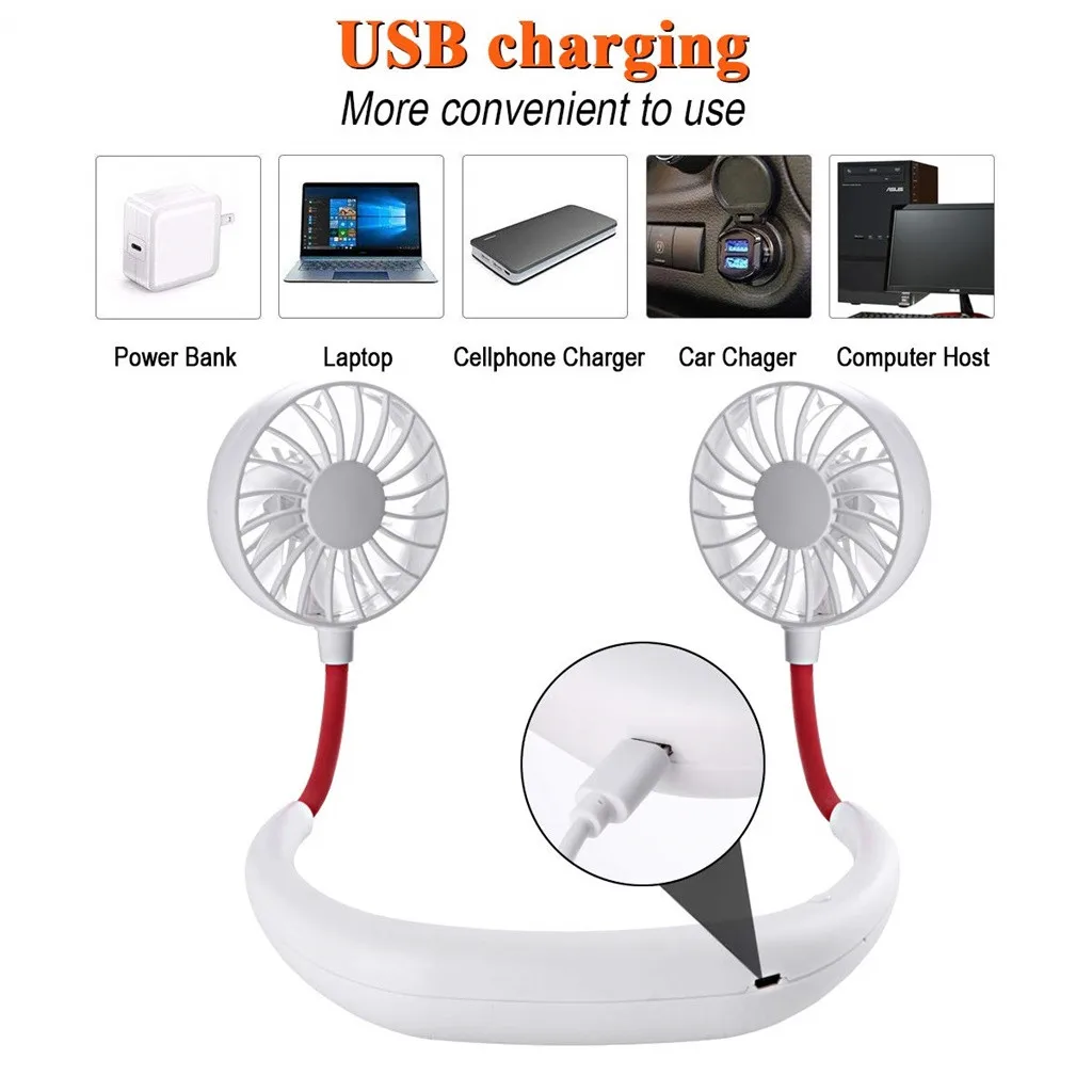 Заряжаемый от USB шейный платок, стильный подвесной вентилятор с двойным охлаждением