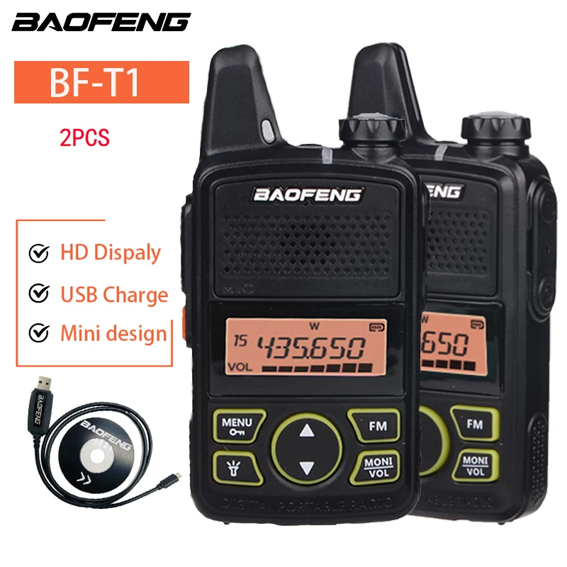 2 шт. Мини Walkie Talkie rаdio BAOFENG BF-T1 дети Woki Toki USB зарядное устройство hf приемопередатчик переносной CB Ham радио UHF передатчик t1