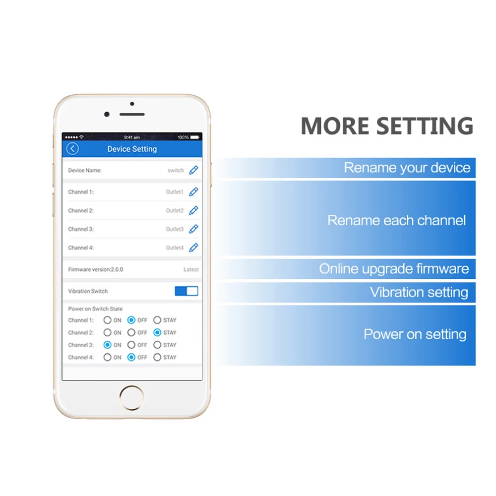 Это новый 4-канальный Дизайн, благодаря которому вы можете удаленно включать/выключать 4 бытовых приборов независимо.