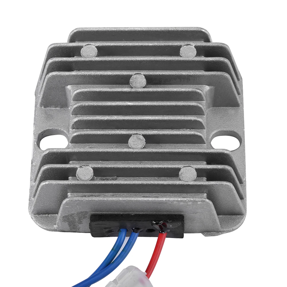 Наш регулятор напряжения 12 В имеет 3 провода: 2 синих или зеленых провода для входного напряжения переменного тока от генератора и один красный провод для выхода напряжения постоянного тока до аккумулятора 12 В постоянного тока. Встроенная электрическая схема внутри заземляется на чехол самой детали в качестве четвертого заземляющего провода. Это равносильно 4-проводной 12V регулятор напряжения.