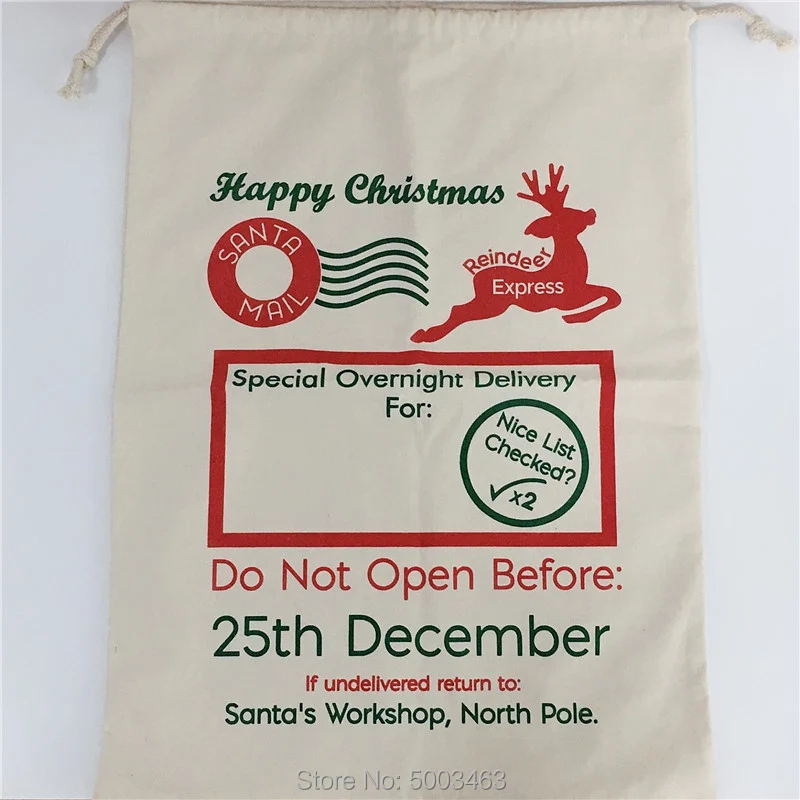 Оптовая продажа, рождественские чулки, сумки, 30 шт., холщовые конфетные сумки, мешок Санты вечерние украшения, сумки Санта-Клауса, персональный подарок для детей