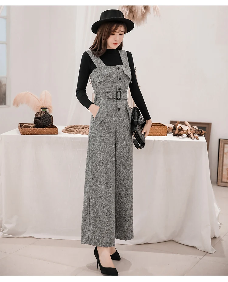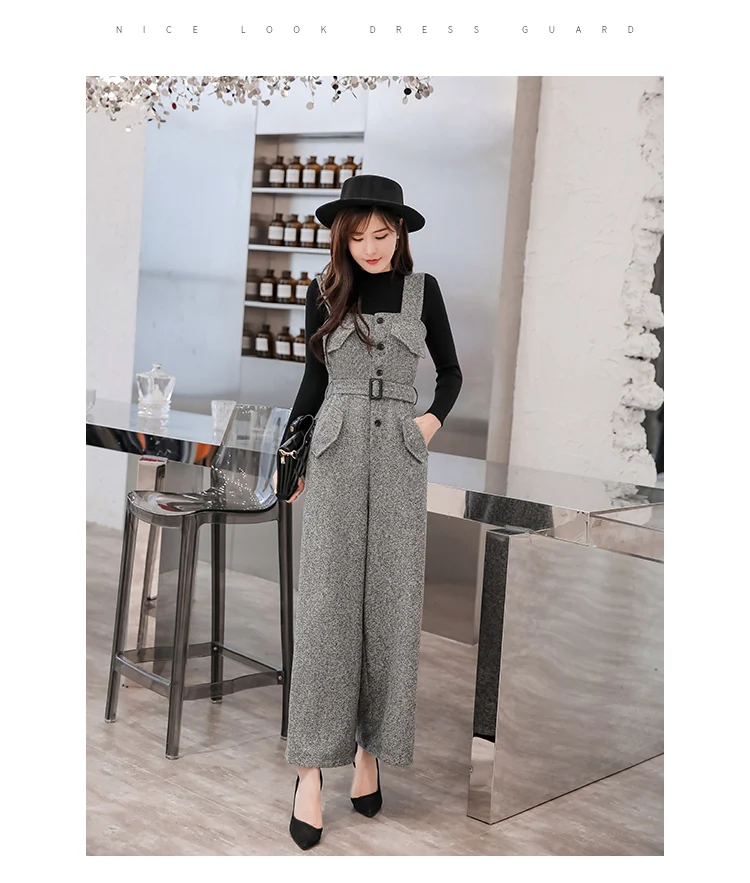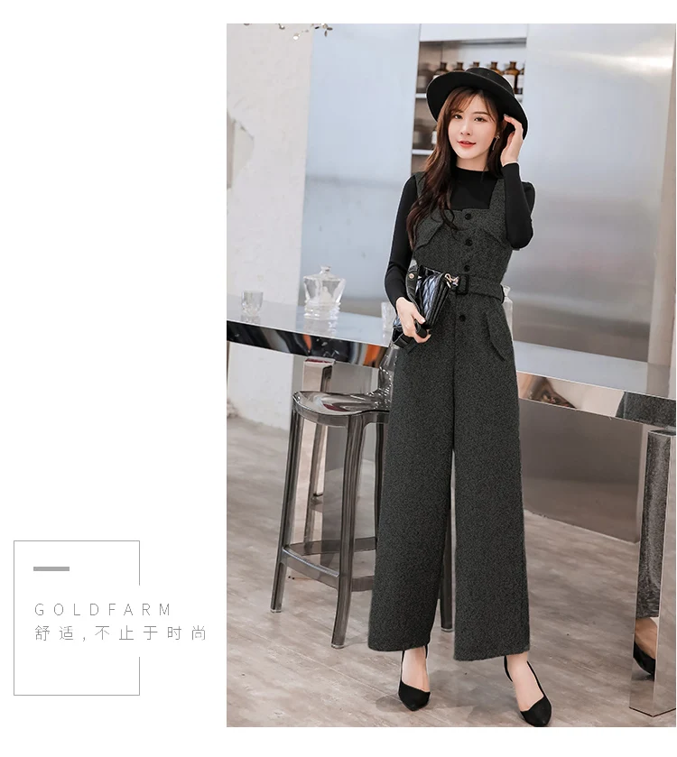 Комбинезон женский Осень и зима 2019 новый осенний однотонный Карманный нагрудник с поясом комбинезон брюки Широкие брюки