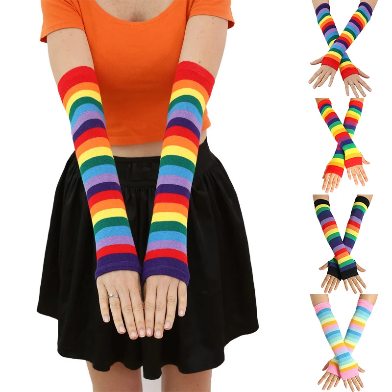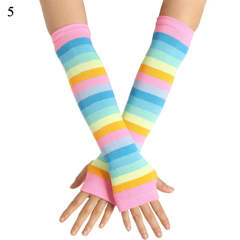 Хлопковые перчатки без пальцев в радужную полоску с длинным рукавом