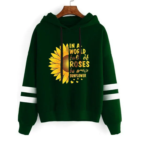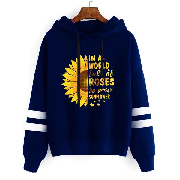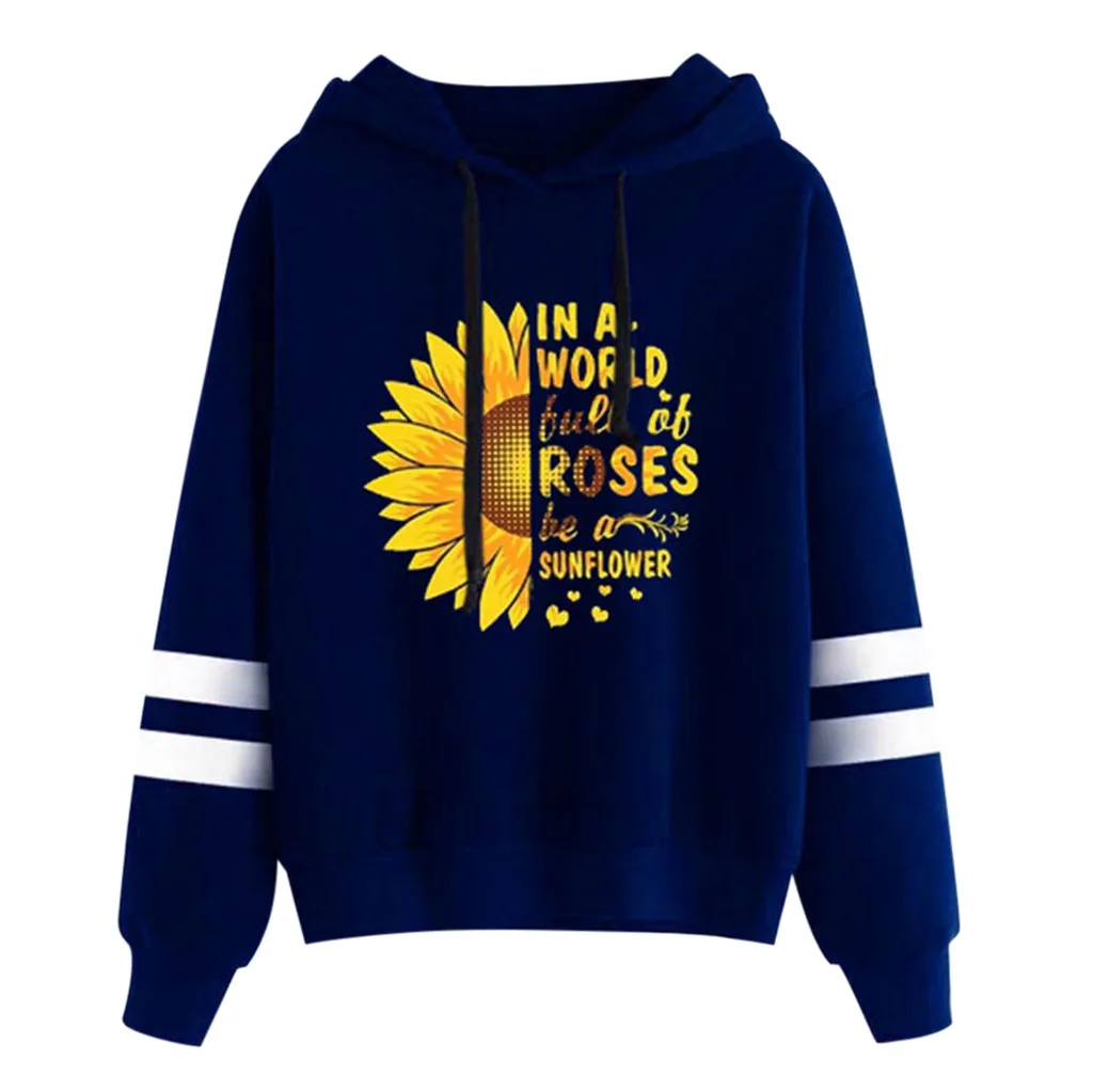 Womens Sunflower Print Long Sleeve Sweatshirt Hooded Pullover Tops Blouse