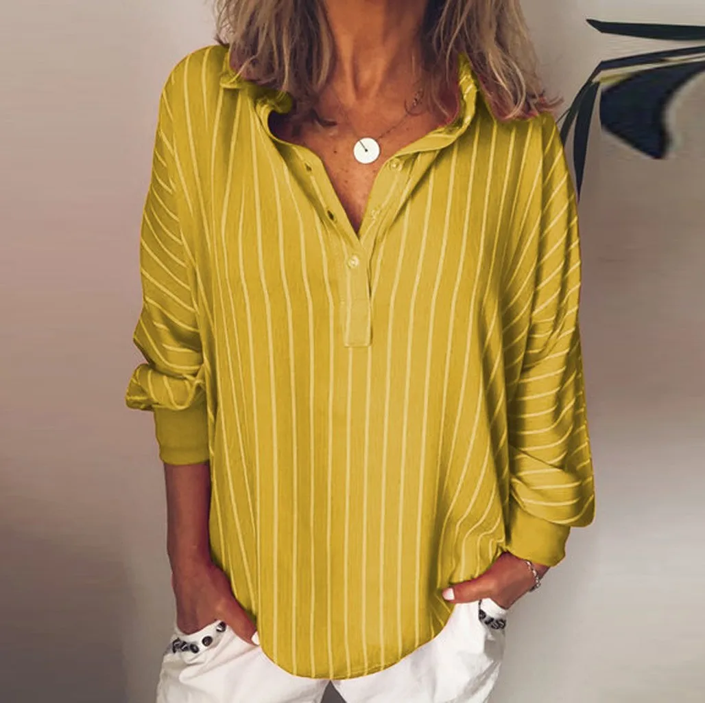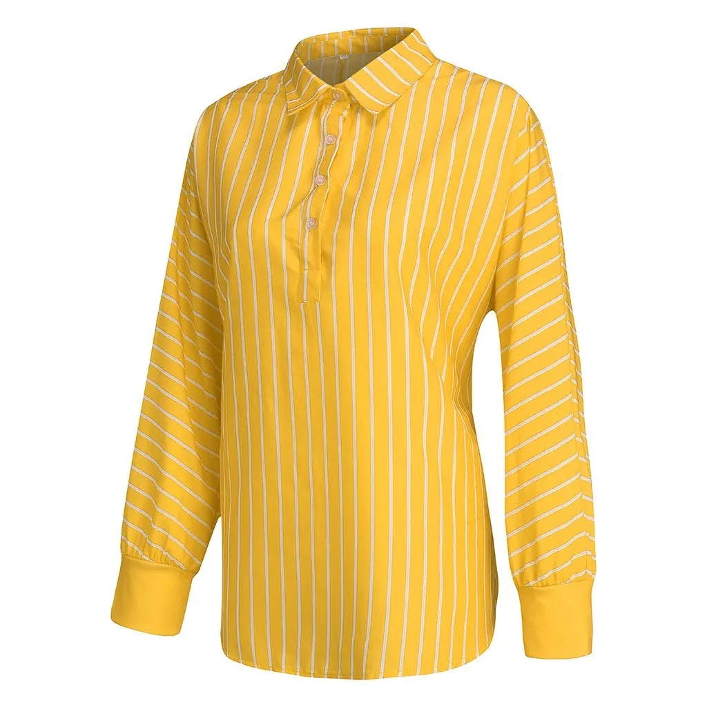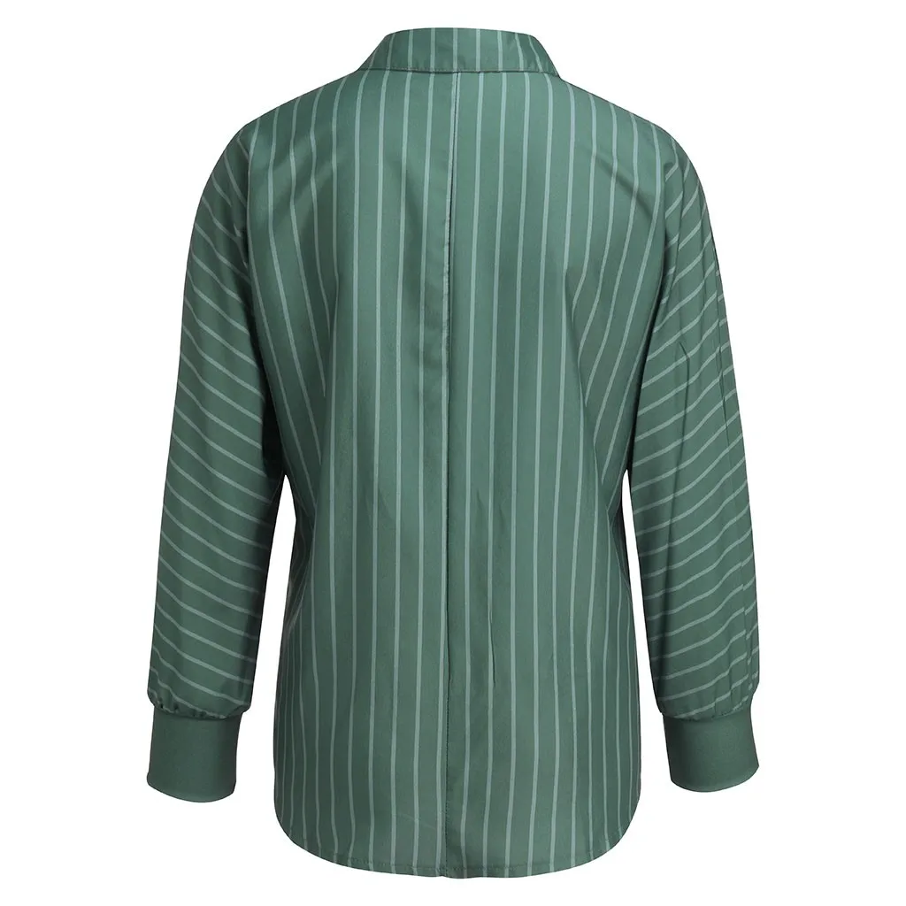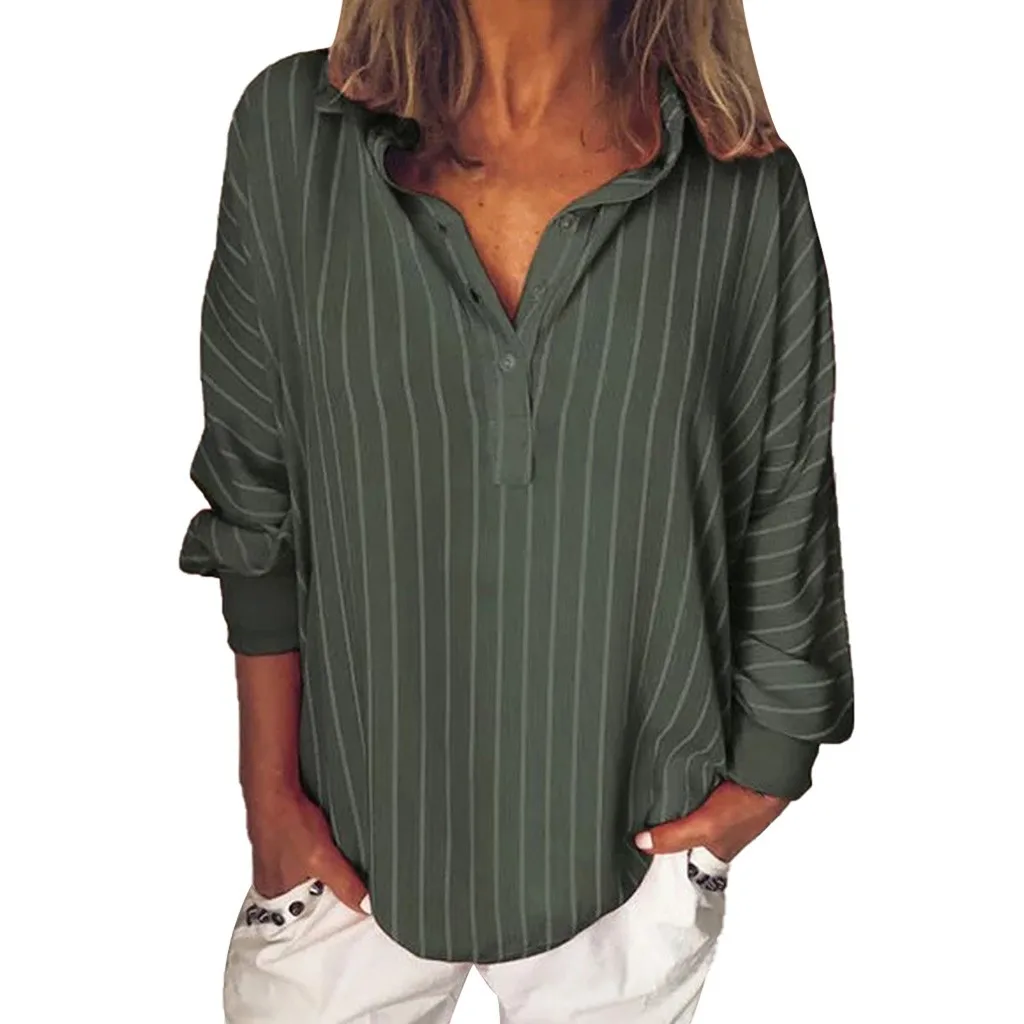 Модная женская Свободная Повседневная полосатая рубашка с длинными рукавами и пуговицами