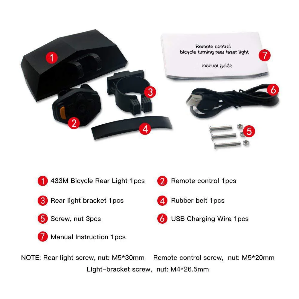 Креативный и стильный внешний вид, хорошо сочетается со всеми видами велосипедов: горный велосипед, дорожный велосипед, внедорожный велосипед, гоночный велосипед. Вместе с интеллектуальным пультом дистанционного управления легко управлять поворотником вправо/влево, аварисветильник и направляющими оповещения, обеспечивает точную безопасность для велосипедиста в ночное время или в дождливый день.
