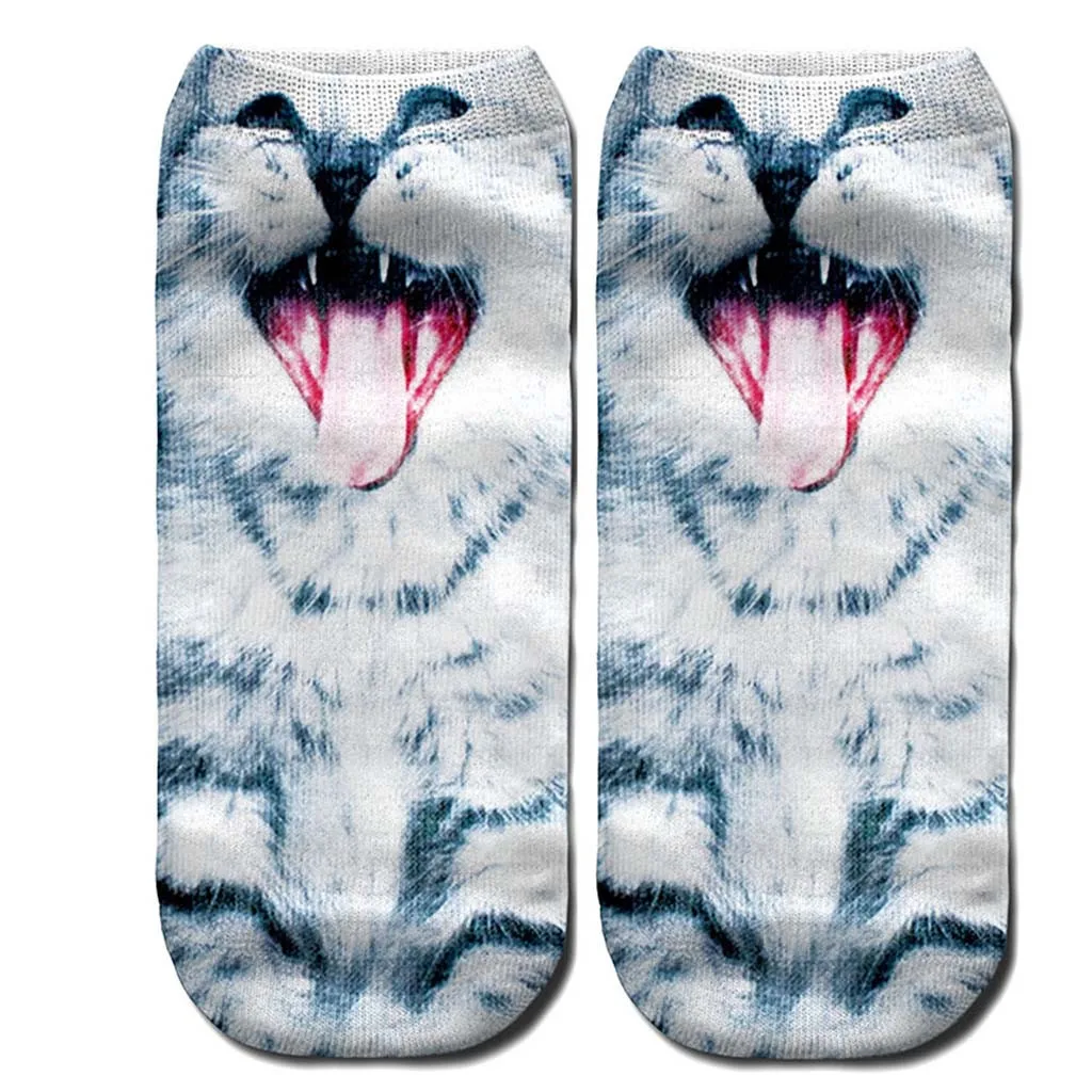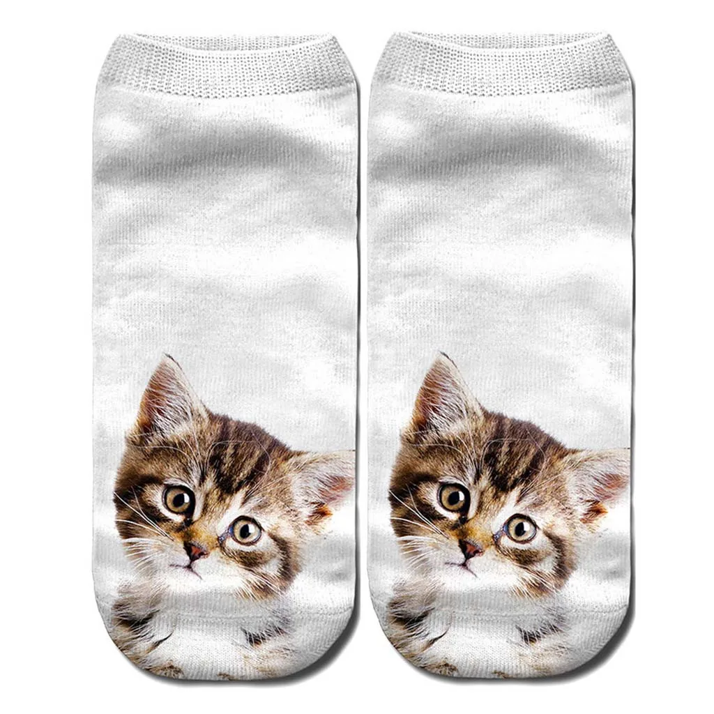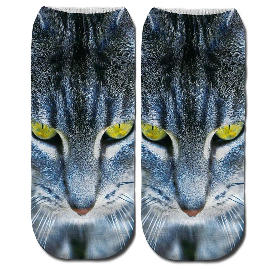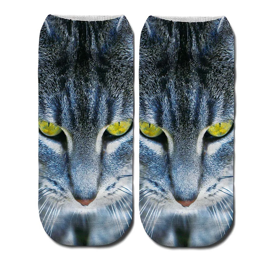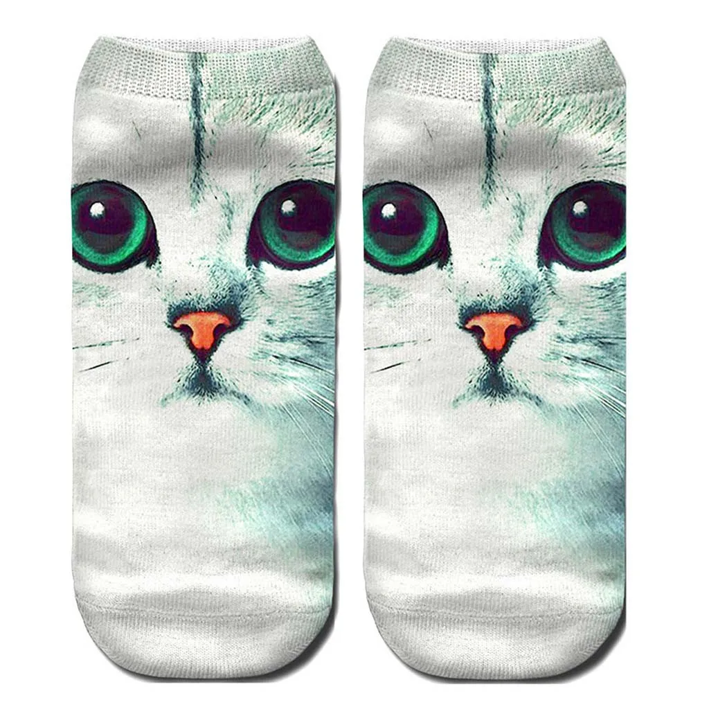 Женские 3D Новые Сумасшедшие забавные носки до лодыжки с котом милые цветные носки с котом