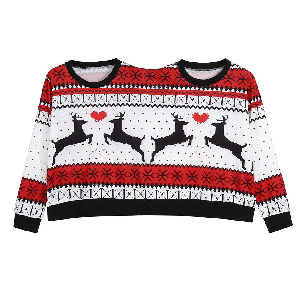 Забавная блузка предназначена для двух человек.Рождество фокусируется на дизайне, отлично подходит для рождественских вечерние!Легкая и неэластичная ткань. Свободный силуэт.
