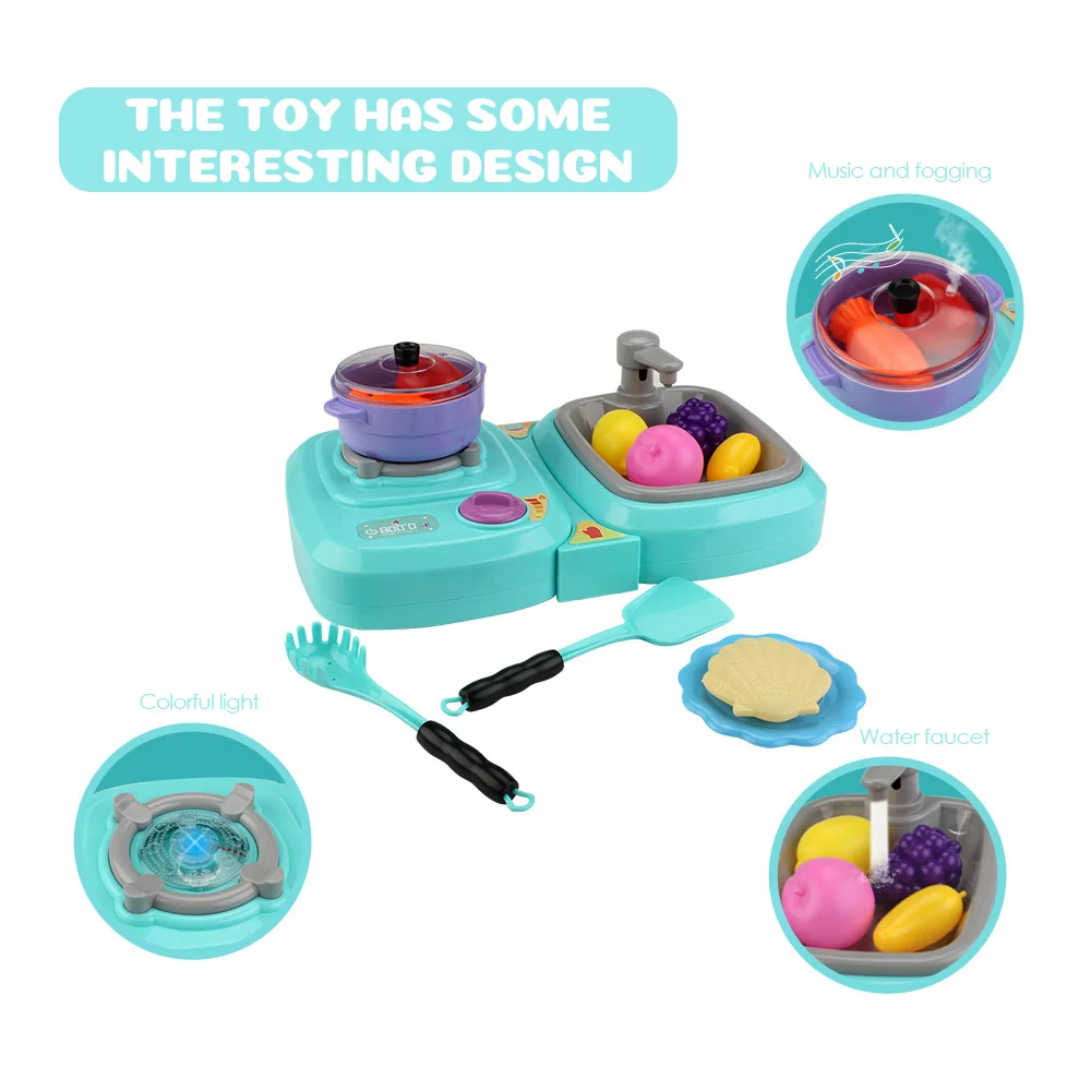 29 шт., Детская электрическая имитация, газовая плита, водопроводный кран, раковина, ролевые игры, игрушка, светильник, кольцо, функция тумана, обучающие игрушки