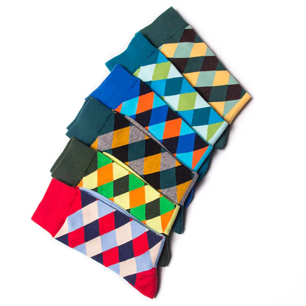 Женские и мужские хлопковые носки в клетку; Разноцветные Милые подарочные носки до щиколотки