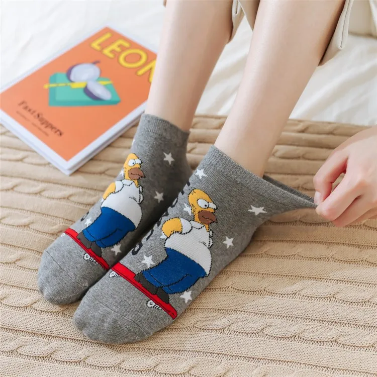 5 пар, новинка, женские носки хлопковые с забавным симпсоном, новые милые носки для всей семьи, невидимые, счастливые, короткие носки, тапочки для женщин