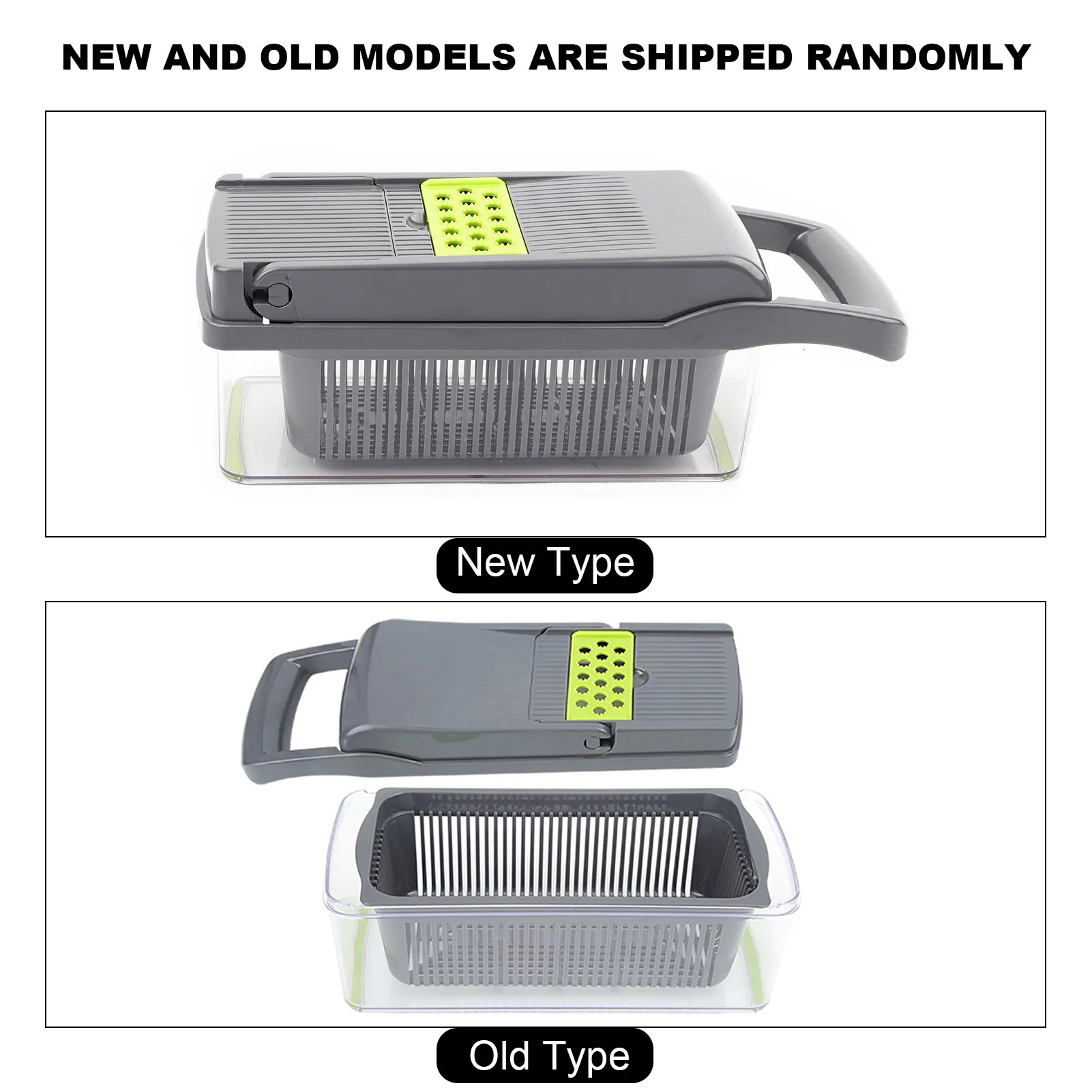 Этот овощерезка предлагает функциональность нескольких кухонных инструментов с 7 взаимозаменяемыми режущими лезвиями.