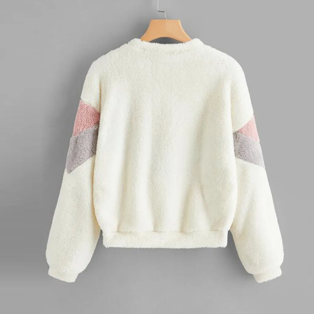 Модные женские пушистые топы с круглым вырезом и длинными рукавами в стиле пэчворкОсобенности: