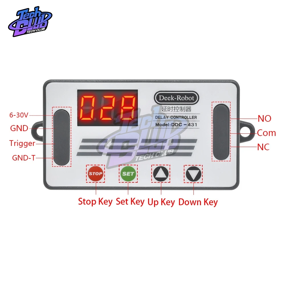 Руководство пользователя 5 в микро USB реле задержки времени 4 кнопки 3 цифры Цифровая трубка Прежде всего, спасибо за покупку нашей платы управления задержками реле. Мощный интерфейс является четким и простым, мощным, с одной кнопкой Функция аварийной остановки (кнопка остановки), с защитой обратного соединения, обратное соединение без горения, память отключения питания. Увеличенный режим сна. После включения в течение 5 минут не будет работать, дисплей автоматически отключается, и любая Кнопка просыпается! Различные параметры OP, CL, LOP могут быть установлены. Эти параметры независимы друг от друга и сохраняют параметры настройки для автоматического сохранения мощности и сохранения функций и т. Д. Руководство по эксплуатации Рабочее напряжение: DC6V-DC30V (защита от широкого напряжения) Источник сигнала триггера: высокоуровневый триггер DC 3,0 V-24V сигнал заземления и системы заземления для улучшения способности системы анти-помех может также короткое замыкание земли Выход Емкость: управляемых DC 30V/10A или переменному току 250V/10A оборудование Размер изделия: 64 мм * 35 мм * 19,3 мм Монтажное отверстие: диаметр 3 мм Рабочая температура: -40 °C ~ 85 °C Режим работы Режим P1: после срабатывания сигнала, реле включается во время работы, затем выключается; В режиме OP следующая операция P1.1: сигнал срабатывает снова. P1.2: Сигнальные триггеры повторно настроены P1.3: сигнал снова запускает сброс, реле отключено, и время остановлено. P-2: подайте сигнал триггера, после того, как реле выключает время CL, реле включается время OP. После завершения синхронизации реле выключено. P3.1: подайте сигнал триггера, после того, как реле включит время OP, реле выключает время CL, затем циклическое действие, приведенное выше, сигнал снова в цикле, реле отключено, время остановлено; Количество циклов (LOP) может быть установлено P3.2: после включения питания не требуется триггерный сигнал, реле включается в режиме OP, реле выключает CL время, и вышеуказанные действия циклируются; Количество циклов (LOP) может быть установлен P-4: Функция удержания сигнала, если есть сигнал триггера, время очищено, реле остается включено; Когда сигнал исчезает, реле выключено после синхронизации OP; во время синхронизации есть сигнал, и время очищается. Режим включения реле ВКЛ: реле разрешено проводить во время проводимости OP. Выключено: реле запрещено включаться и всегда выключено. Короткое нажатие кнопки СТОП на главном интерфейсе для включения и выключения. Текущее состояние будет мигать, а затем вернуться к основному интерфейсу. Эта функция является функцией аварийной остановки, одна кнопка для открытия и закрытия реле. Режим сна (нажмите кнопку стоп, чтобы просмотреть текущий режим) C-P режим сна: в течение пяти минут, без какой-либо операции, цифровая трубка автоматически выключает дисплей, программа работает нормально. О-Д нормальный режим: цифровая трубка всегда на дисплее Нажмите и удерживайте кнопку стоп в течение 2 секунд, а затем отпустите, чтобы переключить C-P и состояние O-d. Текущее состояние будет мигать, а затем вернуться к основному интерфейсу. Диапазон времени Как выбрать диапазон времени После установки значения параметра в интерфейсе выбора режима нажмите кнопку стоп, чтобы выбрать диапазон синхронизации. XXX. Десятичная точка находится в одном месте, диапазон времени: от 1 секунды до 999 секунд 