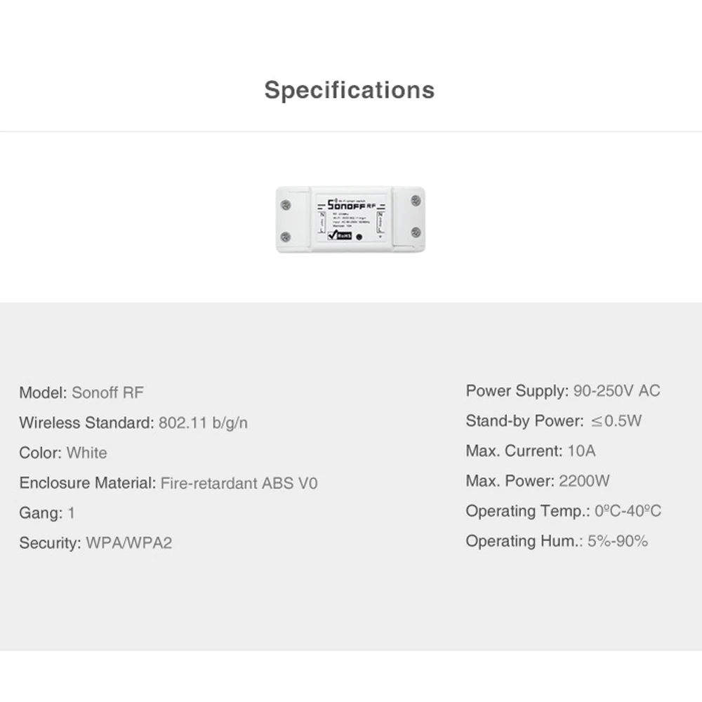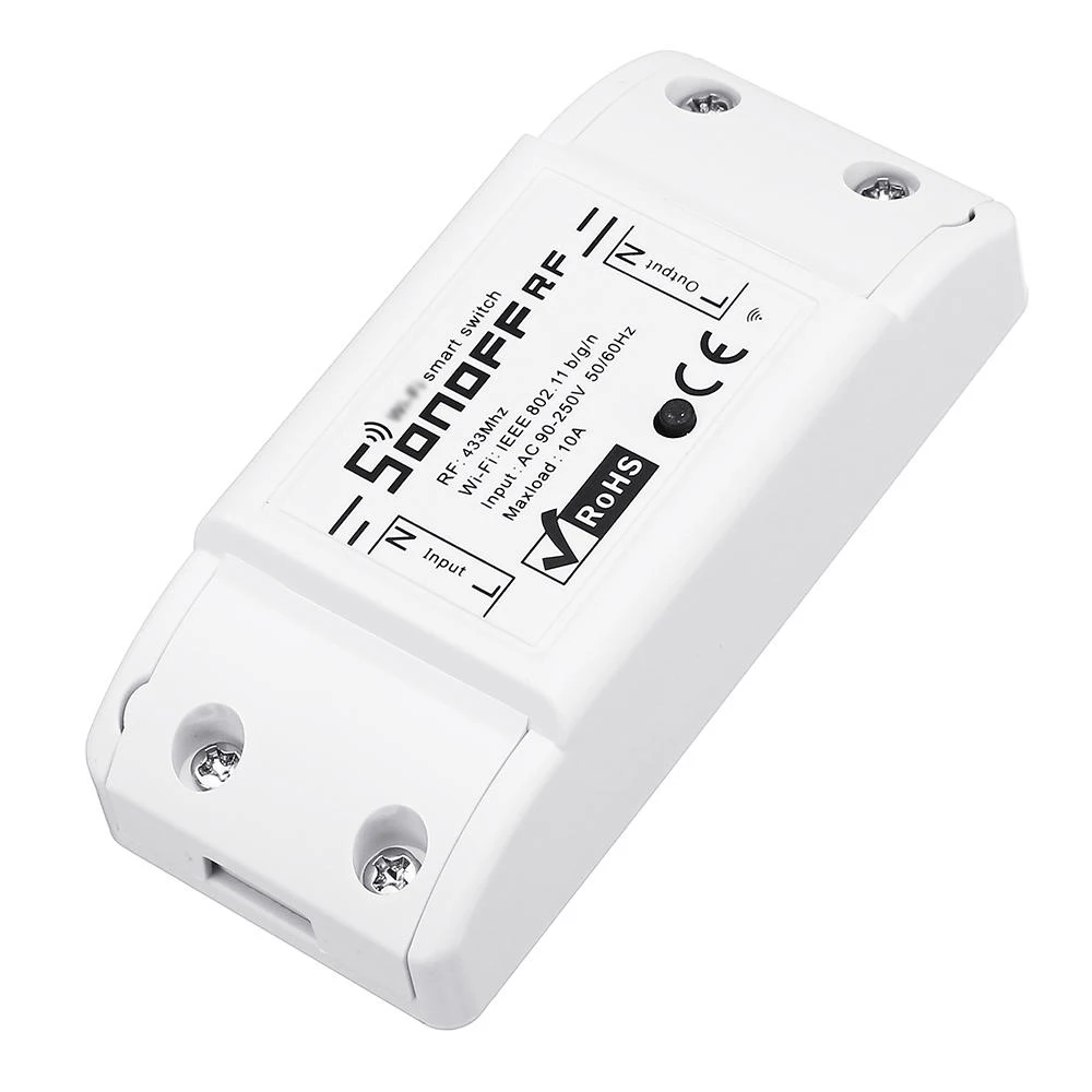 Переключатель Sonoff RF-это версия Sonoff с модулем радиоприемника 433,92 МГц внутри. Этот беспроводной переключатель может использоваться вместе с радиочастотным пультом дистанционного управления (RM433 remote OK to), что позволяет управлять устройствами в помещении. Пульт дистанционного управления позволяет пользователям удаленно включать/выключать подключенные устройства через приложение EWeLink из любой точки мира.