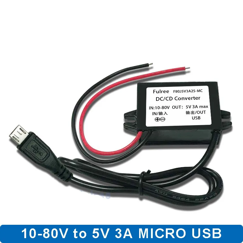 Мини Micro 2 USB 12 В 24 в 36 в 48 в (10 В-80 в) до 5 В 3A DC-DC понижающий преобразователь питания двойной USB Автомобильное зарядное устройство двойной выход адаптер