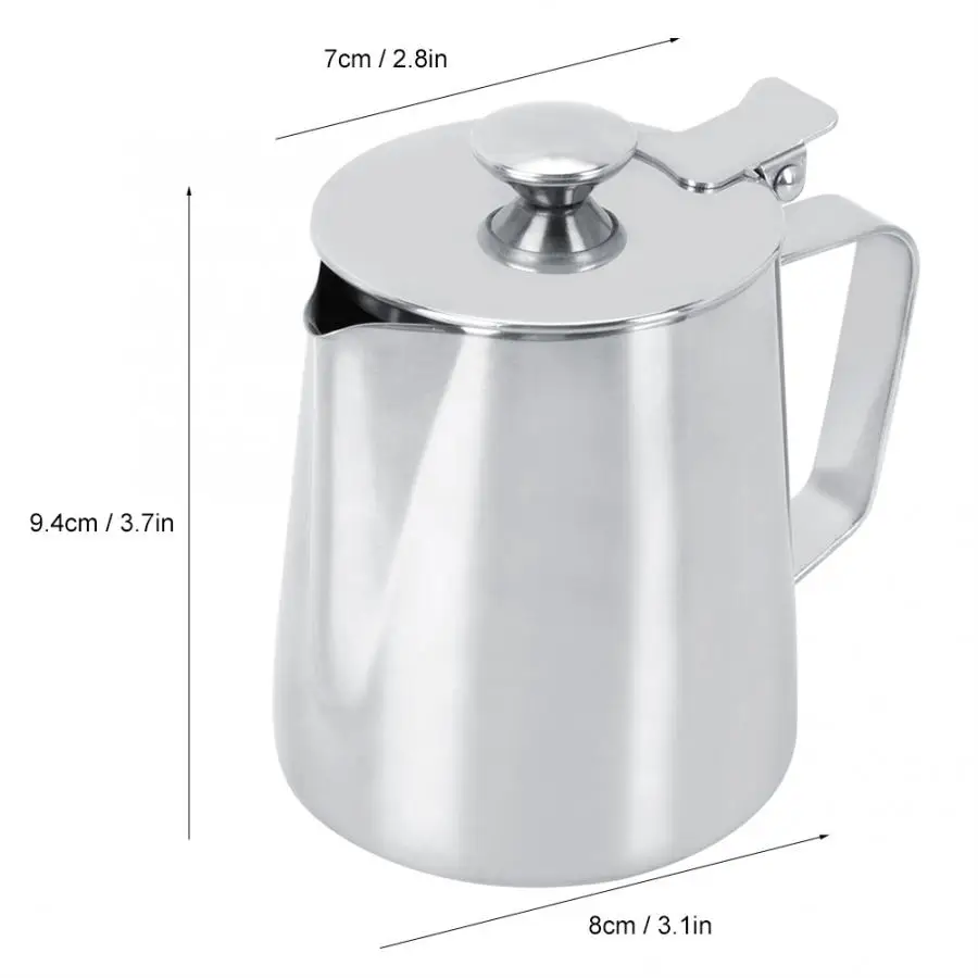 1. Smooth polished finish of the stainless steel pitcher adds a professional look to your coffee tool display.