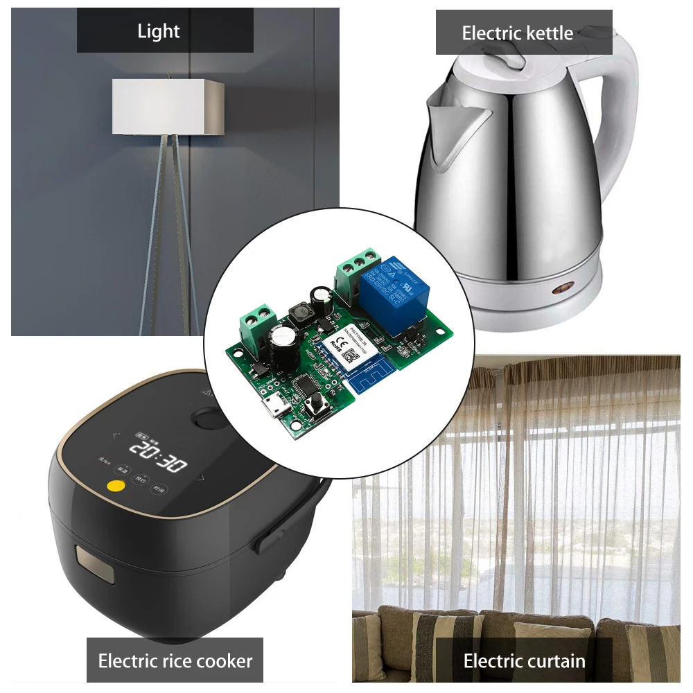* Поддерживает Удаленное включение или выключение подключенных приборов, например светильник, электрический чайник, электрическая рисоварка, электрический занавес и т. Д.