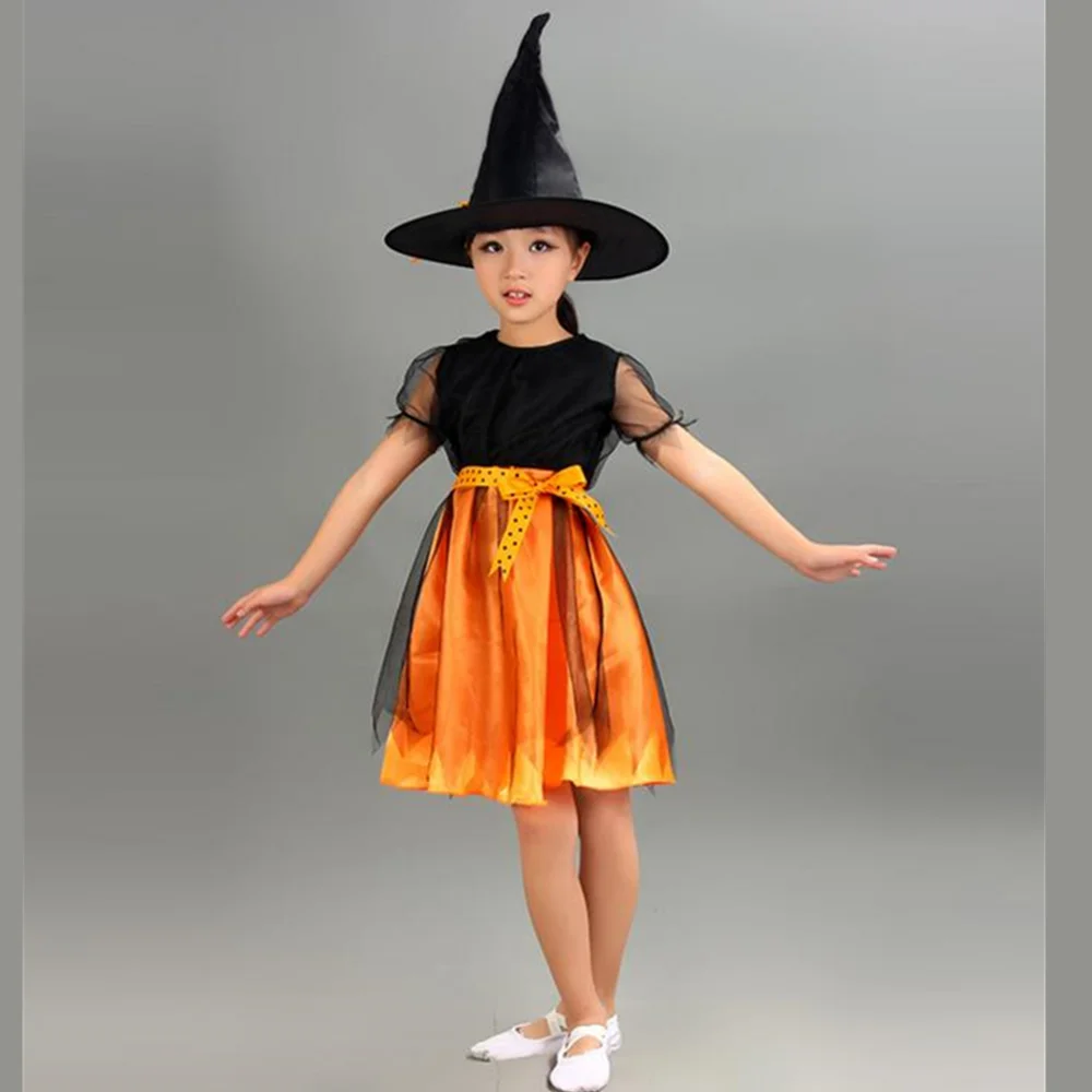 Хэллоуин ведьма костюм детский костюм для выступлений оранжевая маленькая ведьма Школьный фестиваль представление косплей платье Тыква день