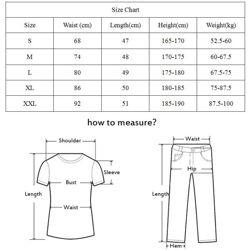1. Оригинальные 100% новые высококачественные спортивные штаны, быстросохнущие тренировочные брюки 2. Подходит для: тренажерного зала, тренировок на открытом воздухе, бега, спорта, мячей 3. Поддержка дропшиппинг/Оптовая торговля 4. Материал: 96% полиэстер + 4% спандекс 5. Размер: S M L XL XXL 6. Если вы покупаете более 3 штук, вы получите дополнительную скидку 10%, вы не можете пропустить это. 7. Замеры сделаны вручную, поэтому возможны отклонения на 1-3 см. (1 см = 0,39 дюйма, 1 дюйм = 2,54 см)