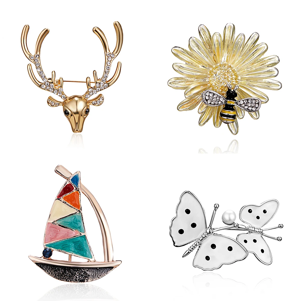 Модные стразы, брошь в виде животных, пчела, бабочка, олень, Маргаритка, цветок, насекомое, брошь для женщин, изысканное ювелирное изделие, рождественский подарок