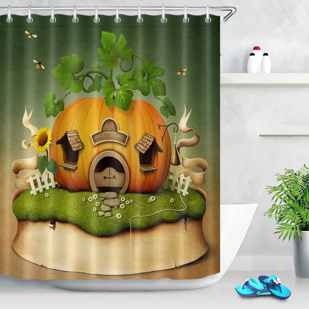 Lb 180*180 интересный Хэллоуин Тыква с роскошным замком занавеска для душа Водонепроницаемая Ванна украшение для детей