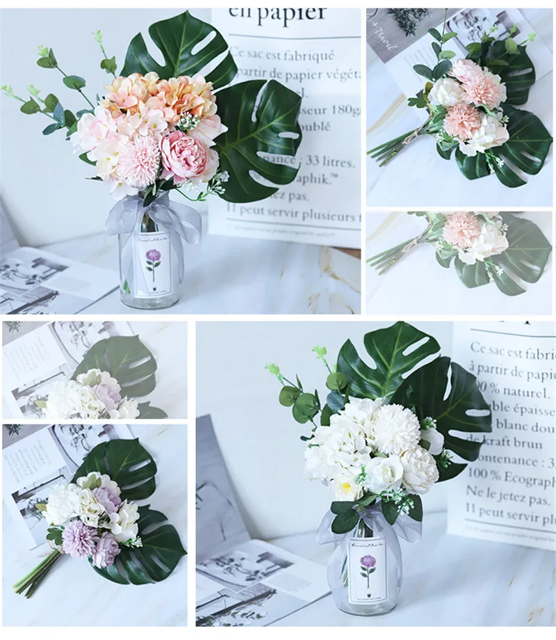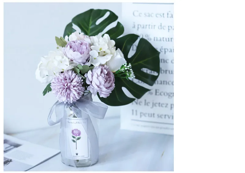 Скандинавские ins Свежий букет Искусственный цветок набор (цветок + ваза) черепаха задний лист Роза пинг понг букет хризантем Свадебный Цветочный