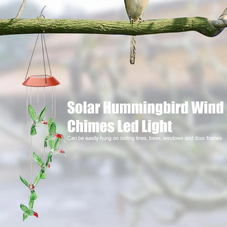 Цвет изменение Солнечный Мощность ветряной колокольчик с украшением в форме открытый светодиодный солнечный светильник Колибри ветряной колокольчик с украшением в форме Колибри светодиодный зарядное устройство на солнечной батареи для мобильного телефона, ветряной колокольчик с украшением в форме