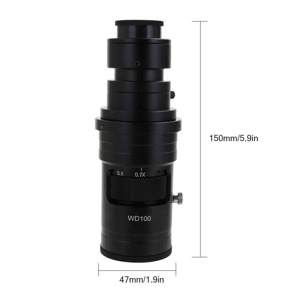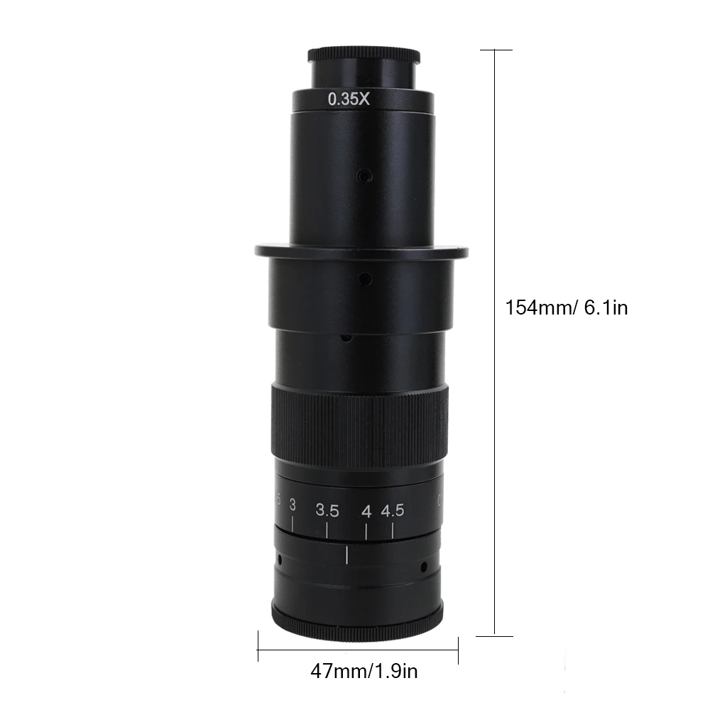 Объектив C-mount с постоянным зумом 130X, рабочее расстояние 30 мм-570 мм. Большое рабочее расстояние и большая площадь наблюдения, подходит для пайки печатных плат SMD телефона.