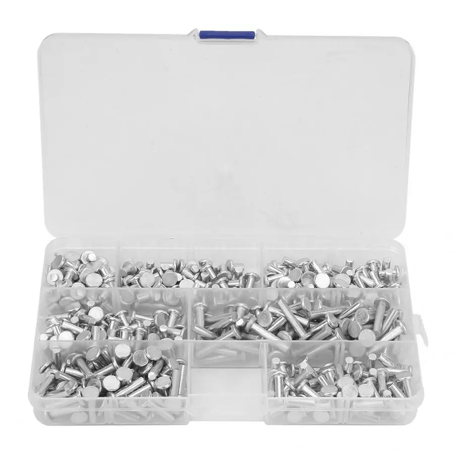 Заклепки изготовлены из алюминия с хорошей коррозионной стойкостью и долгим сроком службы. Плоский дизайн делает установочную поверхность простой и красивой, не царапает руки. Заклепки имеют прочную структуру с более высокой механической прочностью. Прочная и надежная фиксация, не легко отвалится. Все заклепки сортируются и упаковываются в пластиковую коробку в соответствии с их размерами, сохраняя их организованными, чистыми и легко найти.