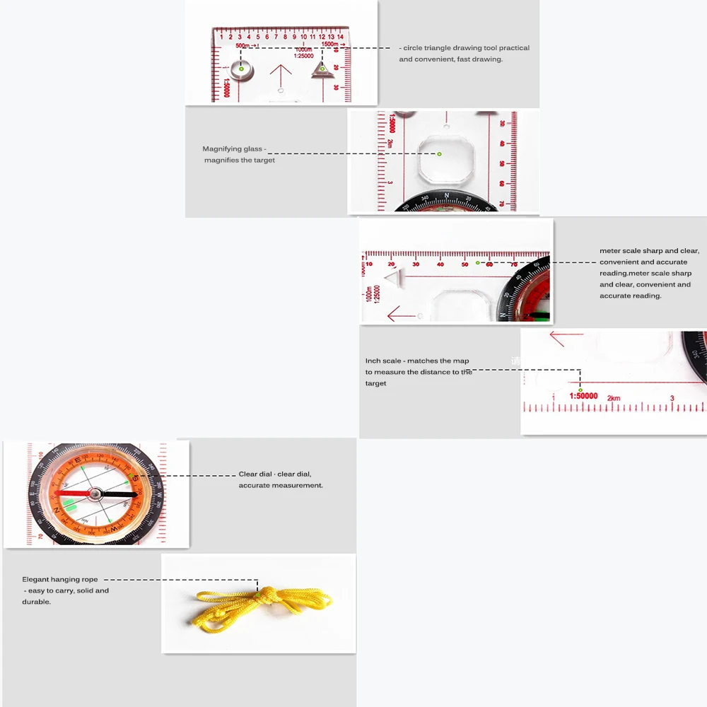 Отверстие для шнурка на базовой пластине для удобной переноски, может использоваться в качестве градуированной шкалы, так что дети учатся использовать Компас для определения направления.