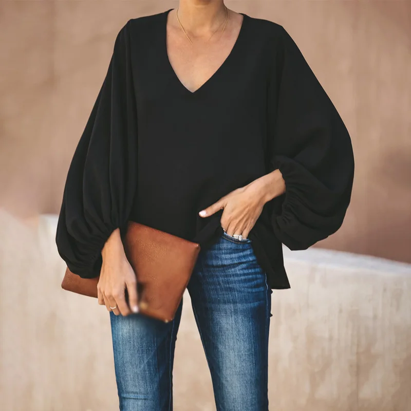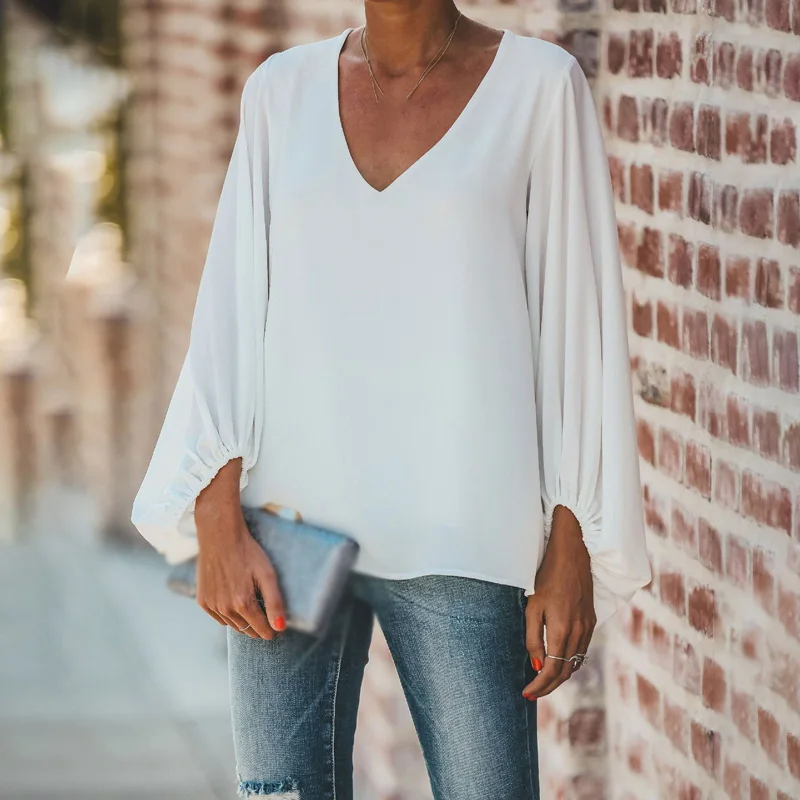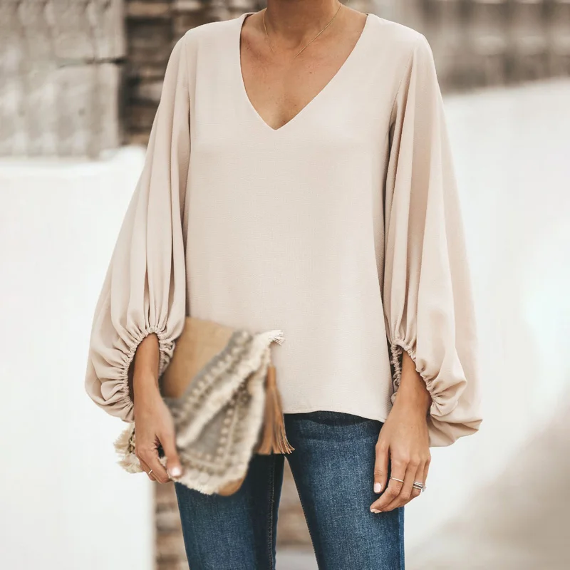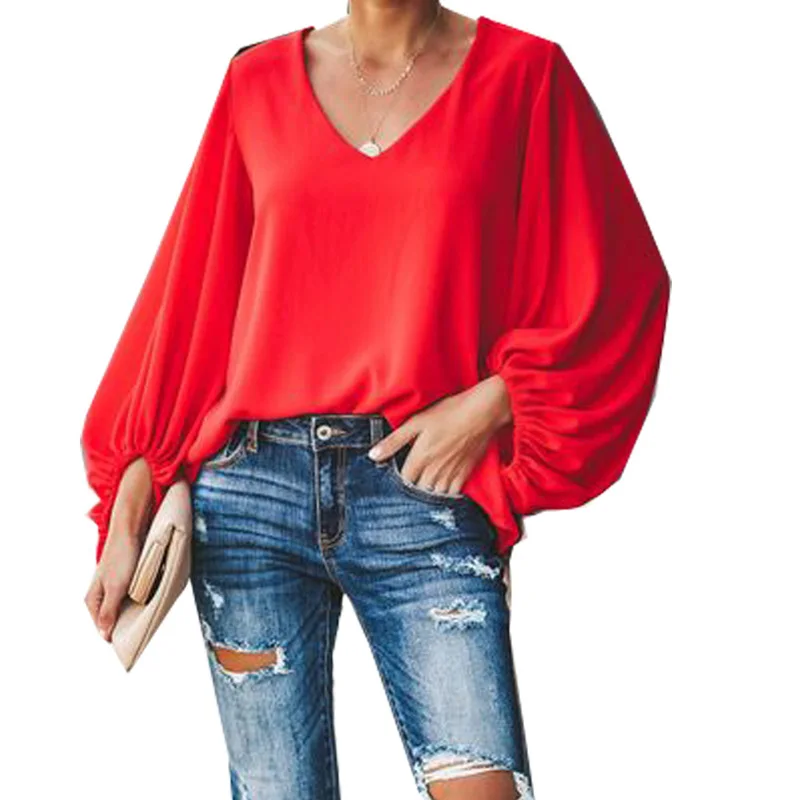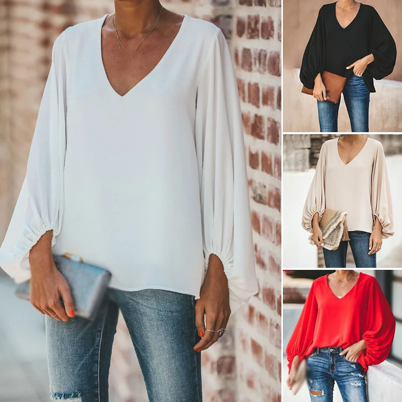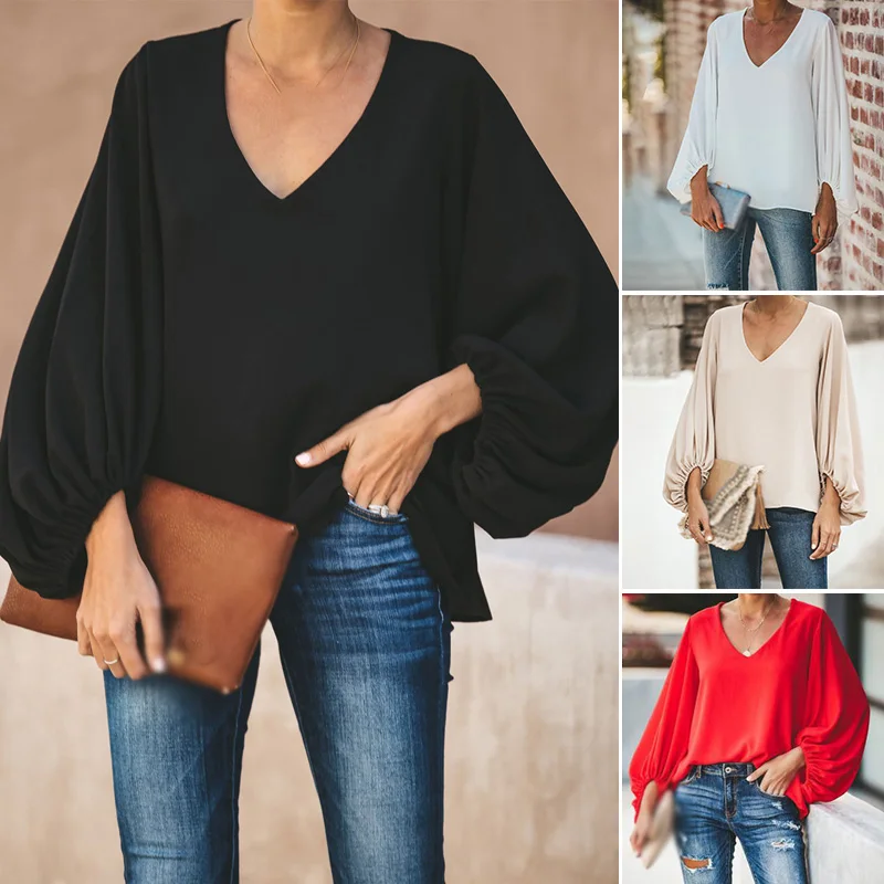 *Item Description:Women's Tops Chiffon Lantern Sleeve V-Neck Pullover T-shirt Loose Fashion