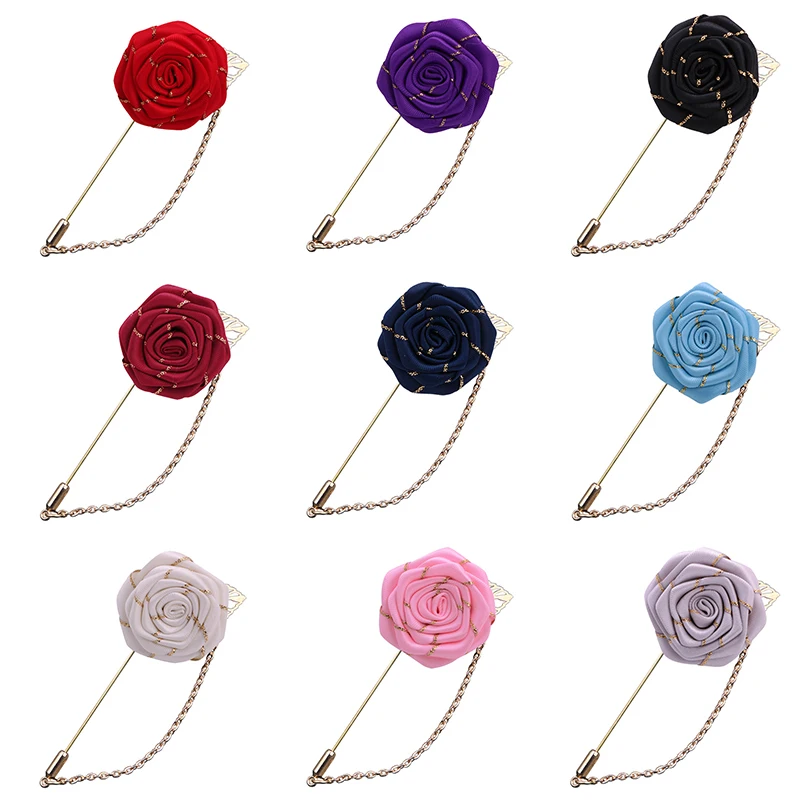 Модная лента роза цветок отворот ткань брошь кисточкой цепи броши для костюмов
