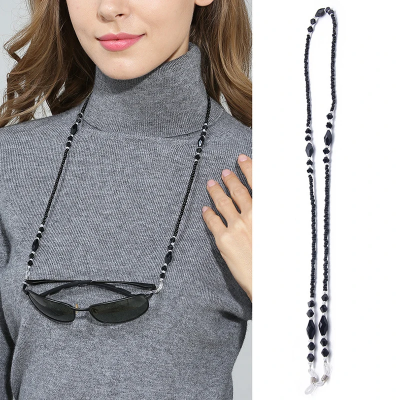 Женские очки с цепочкой, черные акриловые бусины, цепь, противоскользящие очки, ремешок на шею