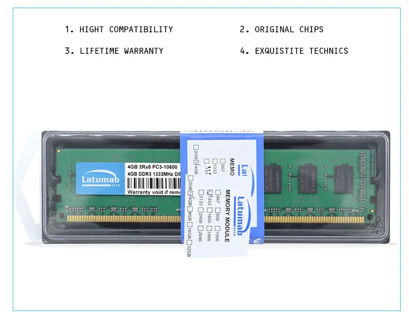 * Модель продукта: Latumab DDR3 4 Гб 1333 МГц/PC3-10600 4 Гб