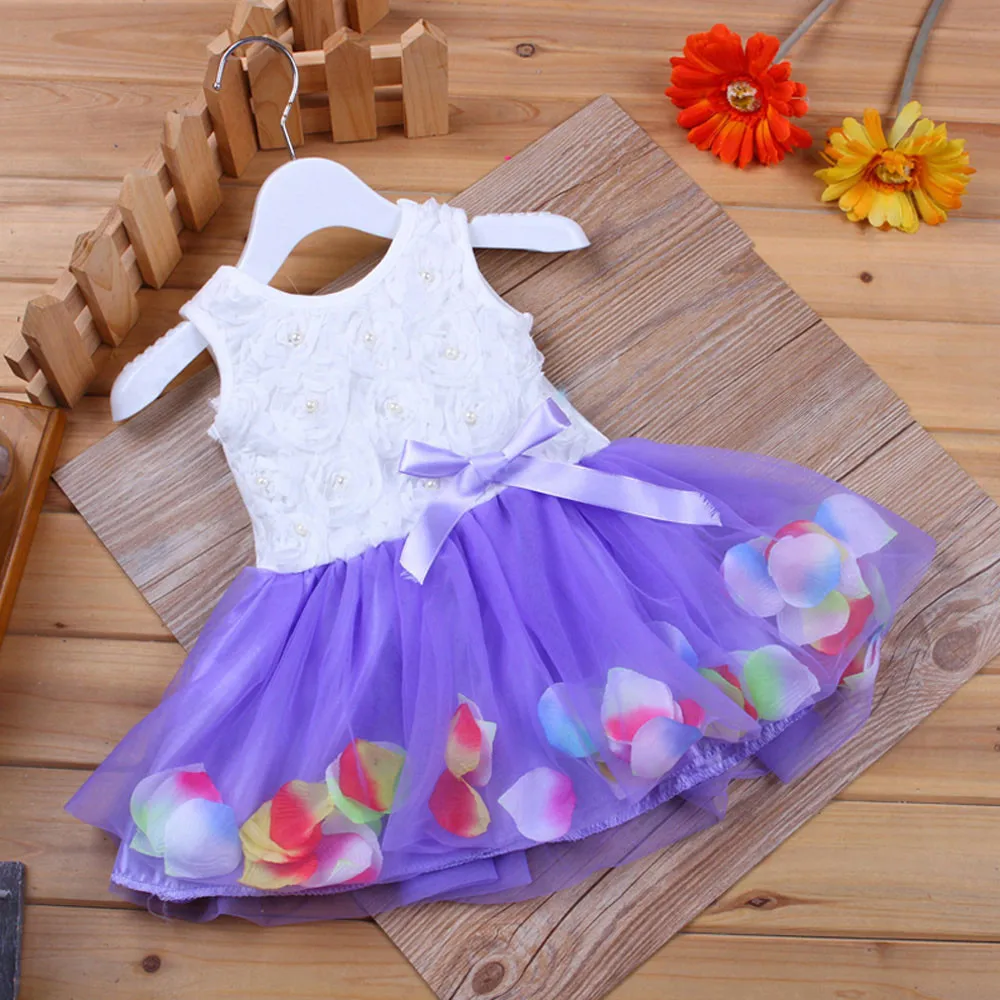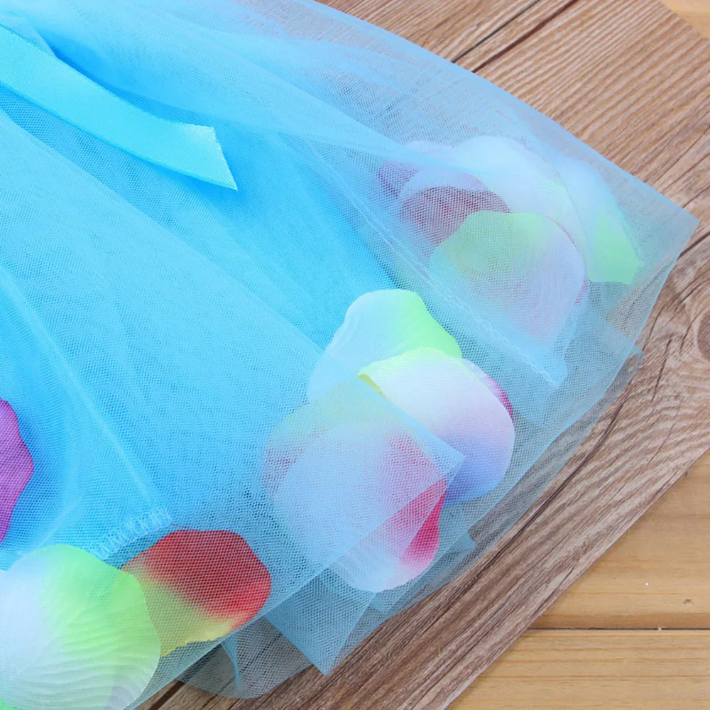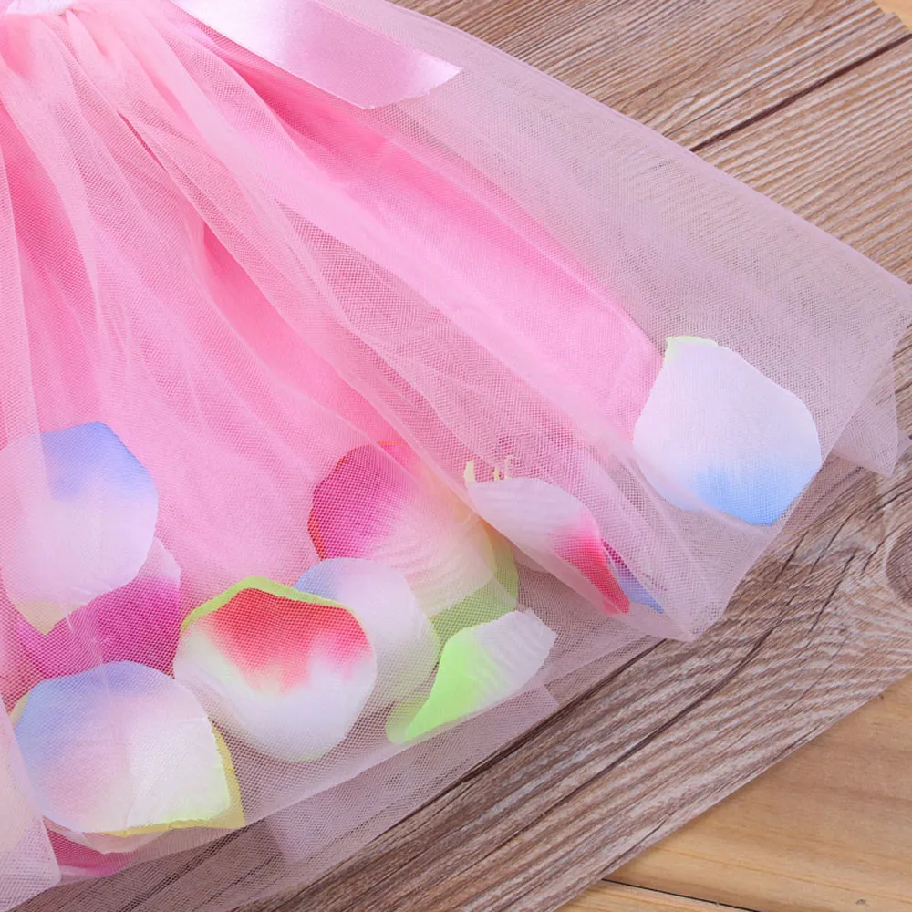 Toddler Infant Bowknot Tutu Petals Tulle Dresses Baby Girls Flower Gown Outfits