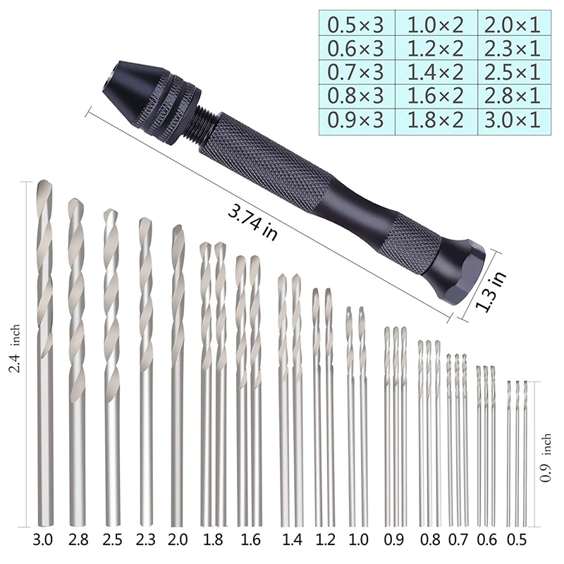 Высокое качество: это регулируемое хобби сверло имеет 3 челюсти закаленной стали Быстрозажимной патрон для захвата небольших сверл плотно. После многократного использования сверло не скользит и не выпадает. А также можно регулировать спиральных сверл диаметром 0,2-3,4 мм
